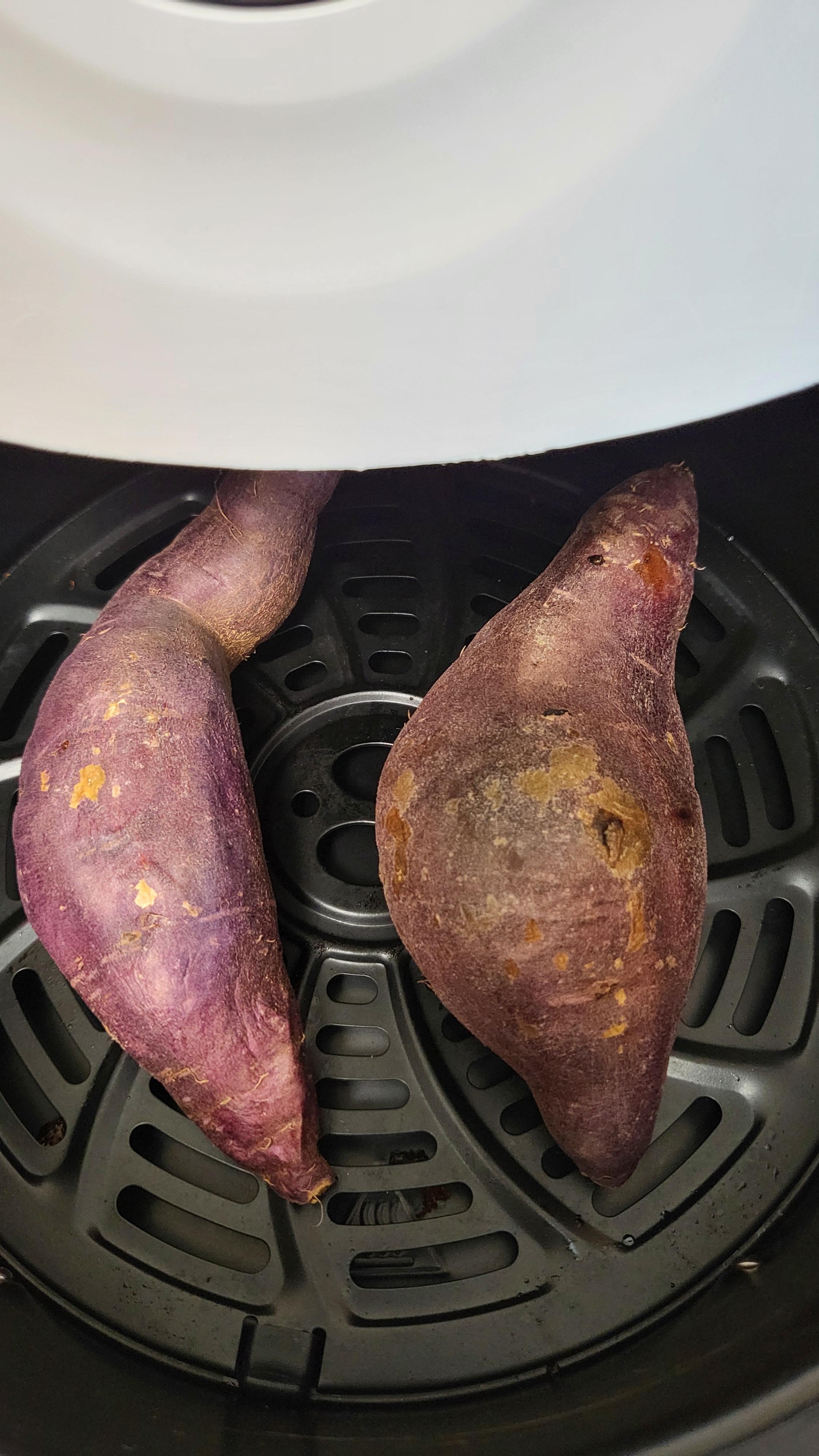 고구마는 180도에서 45분 돌리면 됩니다. 중간에 한 번 뒤집어 주면 되고요 다되면 '땡' 하면서 경쾌하게 끝났다고 알려줍니다. 요즘 햇고구마 나오는 철이라 햇고구마 사서 에어프라이어에 돌렸더니 밤고구마가 맛있게 구워졌어요. 두 개 저 혼자서 다 먹었네요. ^^