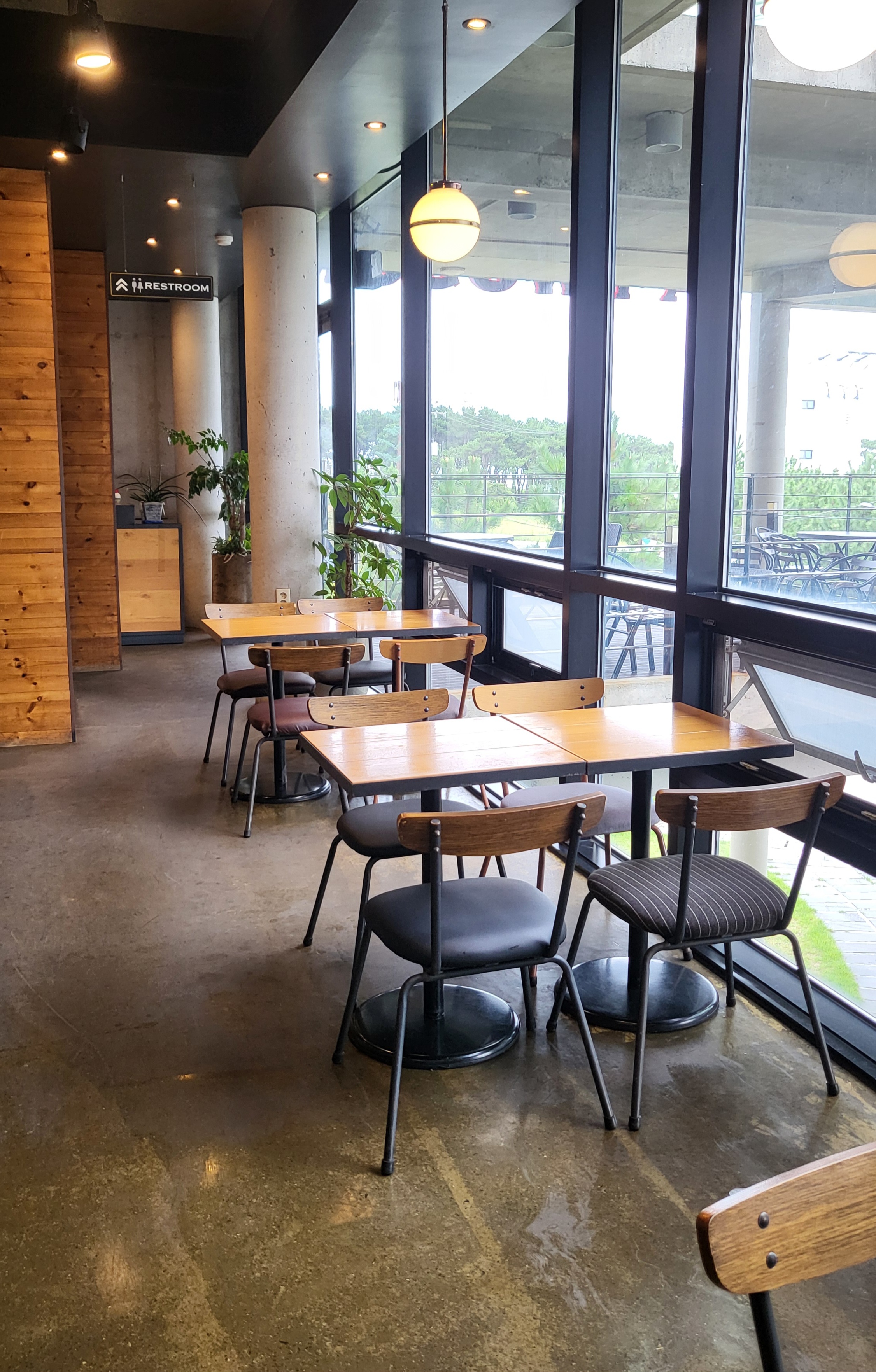 카페는 3층까지 있어서 자리는 여유있게 앉을 수 있어요. 저는 2층으로 갔습니다. 야외 테라스도 있는데 시원한 바닷바람을 느끼고 싶다면 야외 테라스에 앉아보는 것도 좋을 듯 합니다.