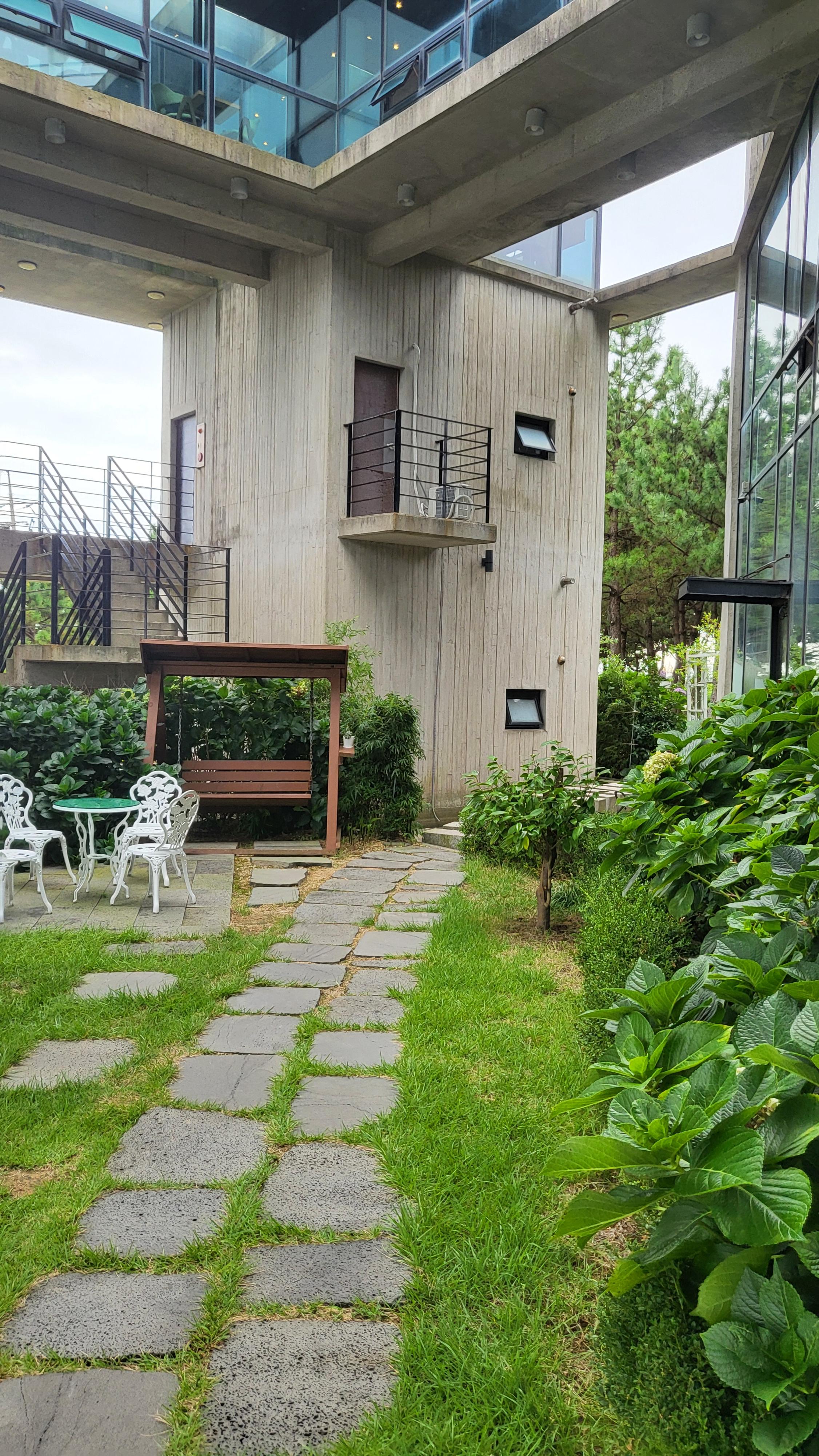 카페에 들어가기 전부터 자연으로 둘러싸여 있어서 기분이 좋더라고요. 그리고 앞에는 바다가 있어서 시야가 탁 트이고 시원한 바닷바람이 불어와서 우울한 마음이 있었다면 저 멀리로 날려 보내줄 것 같은 느낌이었습니다.
