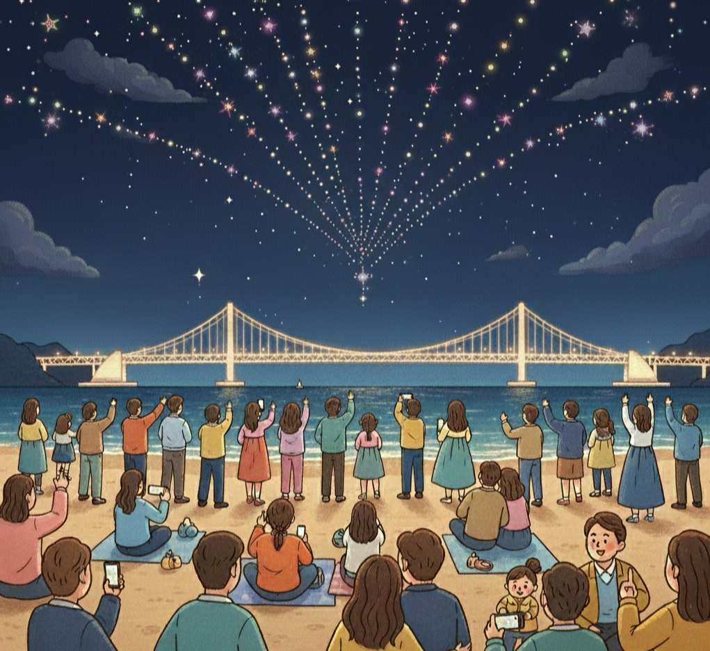 가족들과 함께 광안대교의 아름다운 야경을 배경으로 펼쳐지는 환상적인 드론 쇼를 관람하며, 명절의 즐거움을 두 배로 느껴보세요.