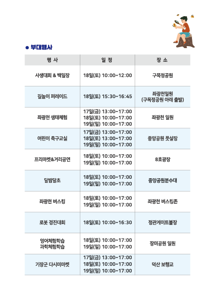 행사장소: 기장군 정관읍 좌광천 지방정원 일원