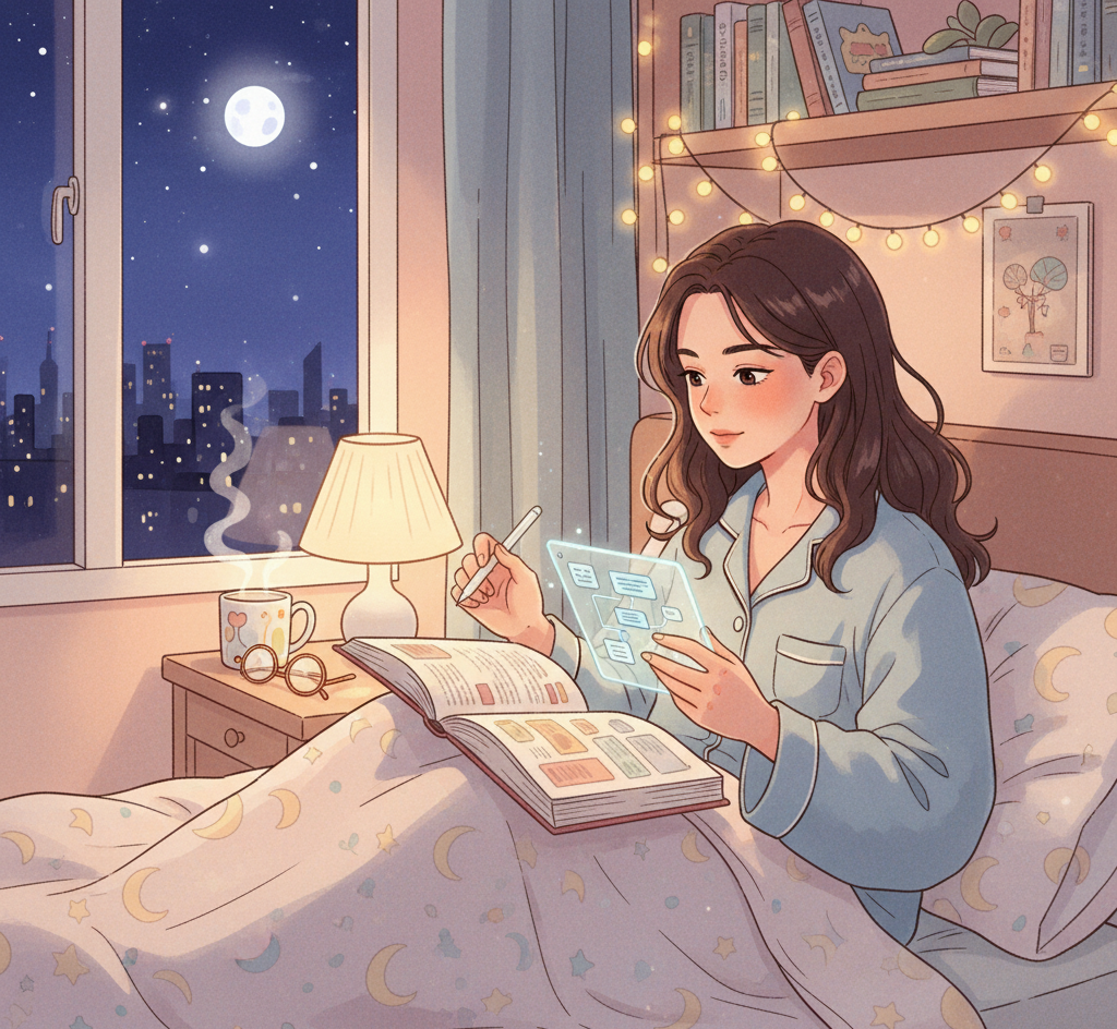 📌잠들기 전 10분의 복습은 뇌에게 "이 내용을 밤새도록 정리해줘!"라고 명령하는 것과 같습니다.