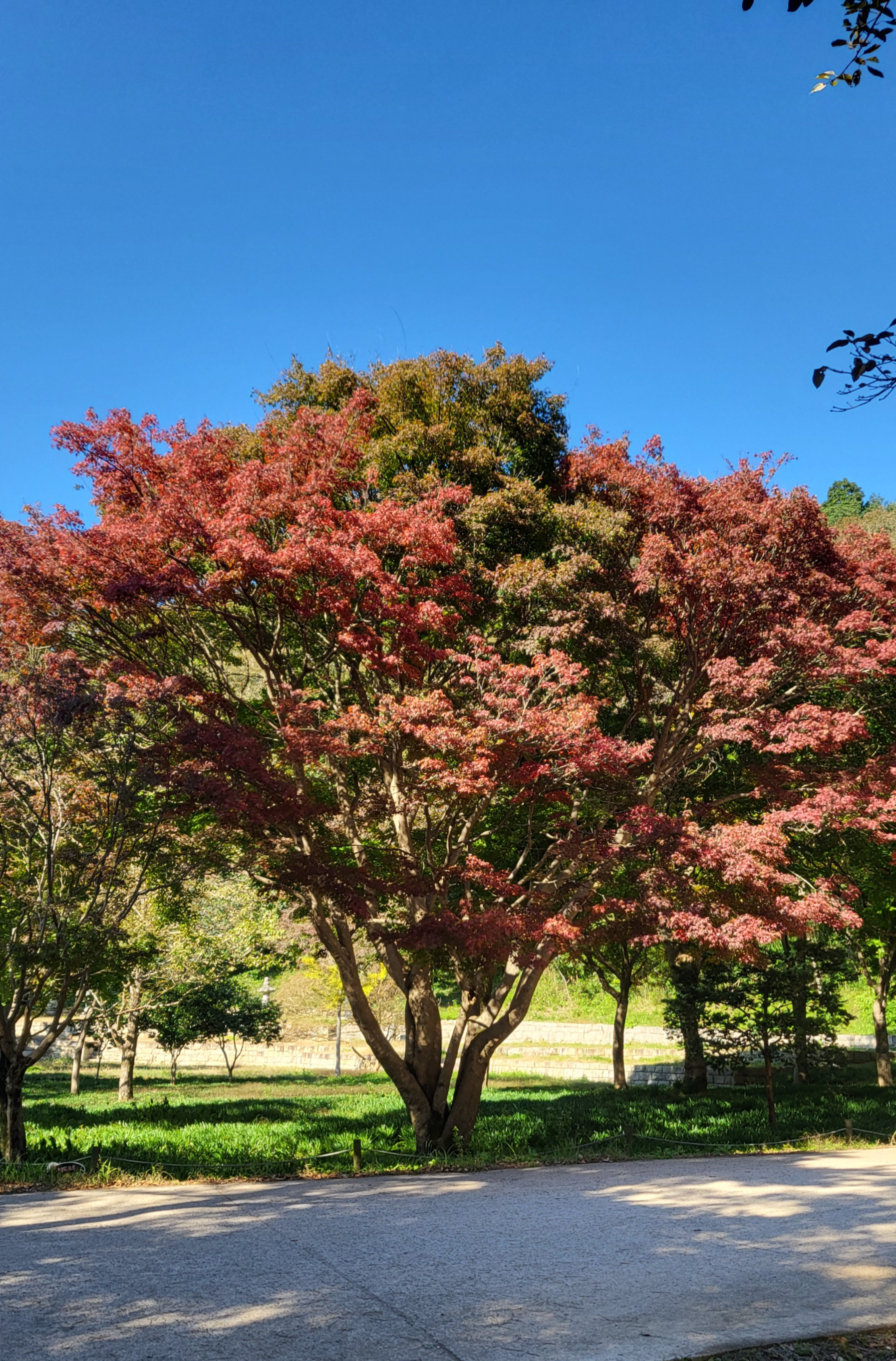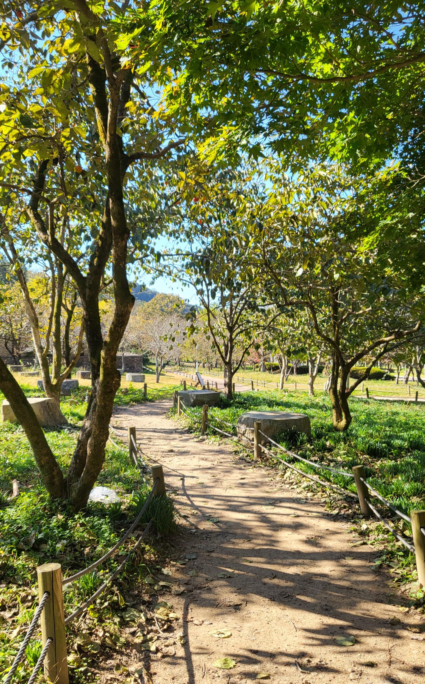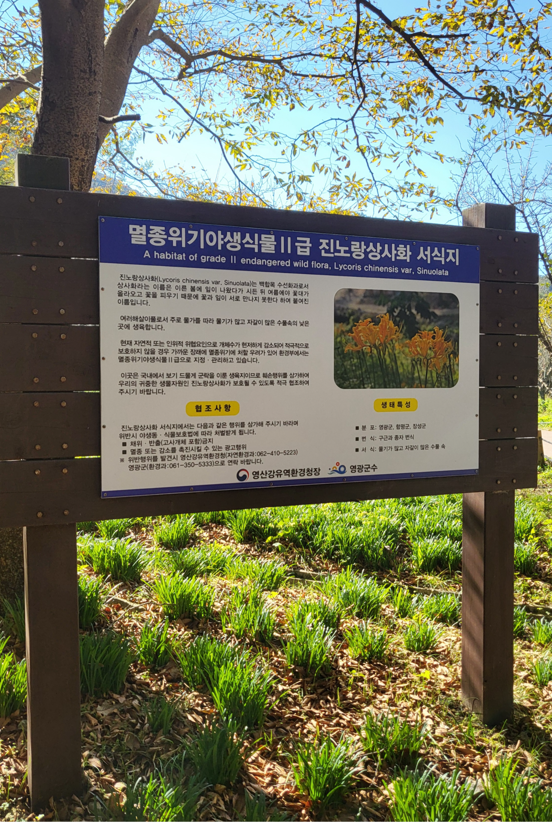 9월 중순경 절정을 이루는 붉은 상사화는 '꽃과 잎이 서로 만나지 못한다'는 애틋한 전설을 품고 있어, 걷는 이의 마음을 더욱 사로잡습니다. 아쉽게도 제가 간 날은 11월 초여서 이미 상사화 꽃이 진 상태여서 만개한 모습은 볼 수 없었습니다.
