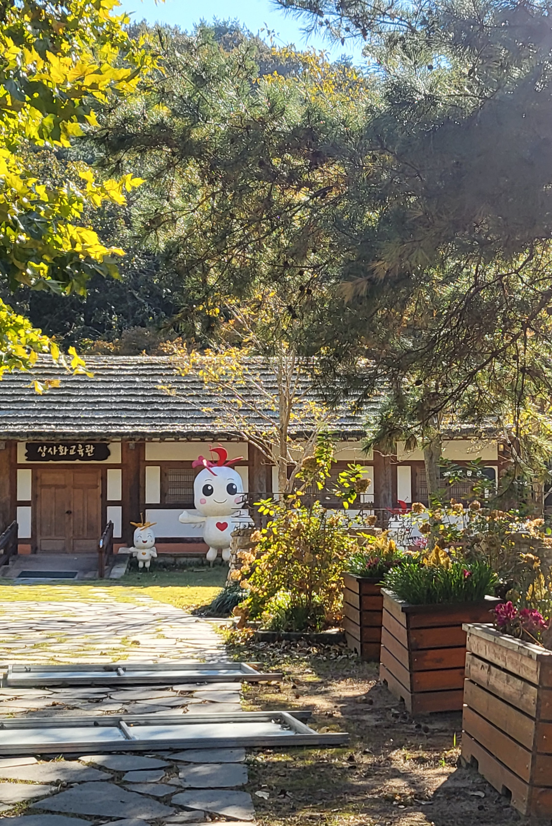 파랗게 잔디같이 보이는 부분이 상사화라고 합니다. 상사화 캐릭터도 있는데 처음에는 닭인줄 알았다가 그것이 상사화 캐릭터라는 것을 알고 한바탕 웃었답니다.