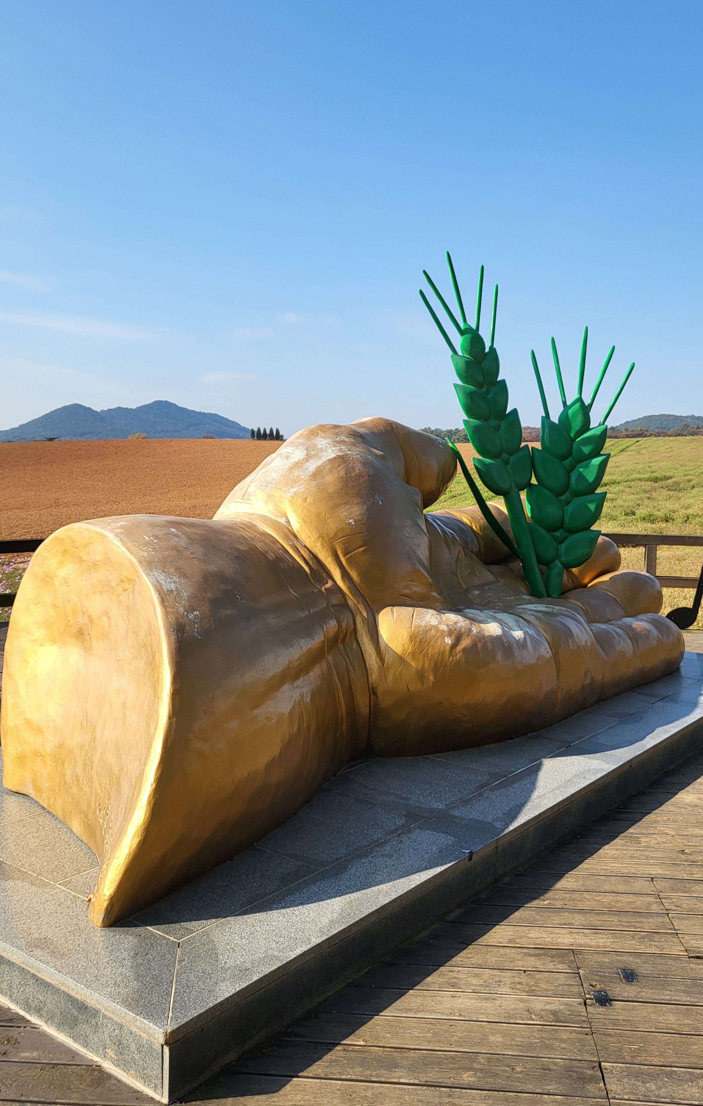 농장의 시그니처인 '풍요의 손' 조형물이 있는데요 인증샷을 남긴다면 황금빛 손과 뒤편의 광활한 대지와 잘 어울린답니다.