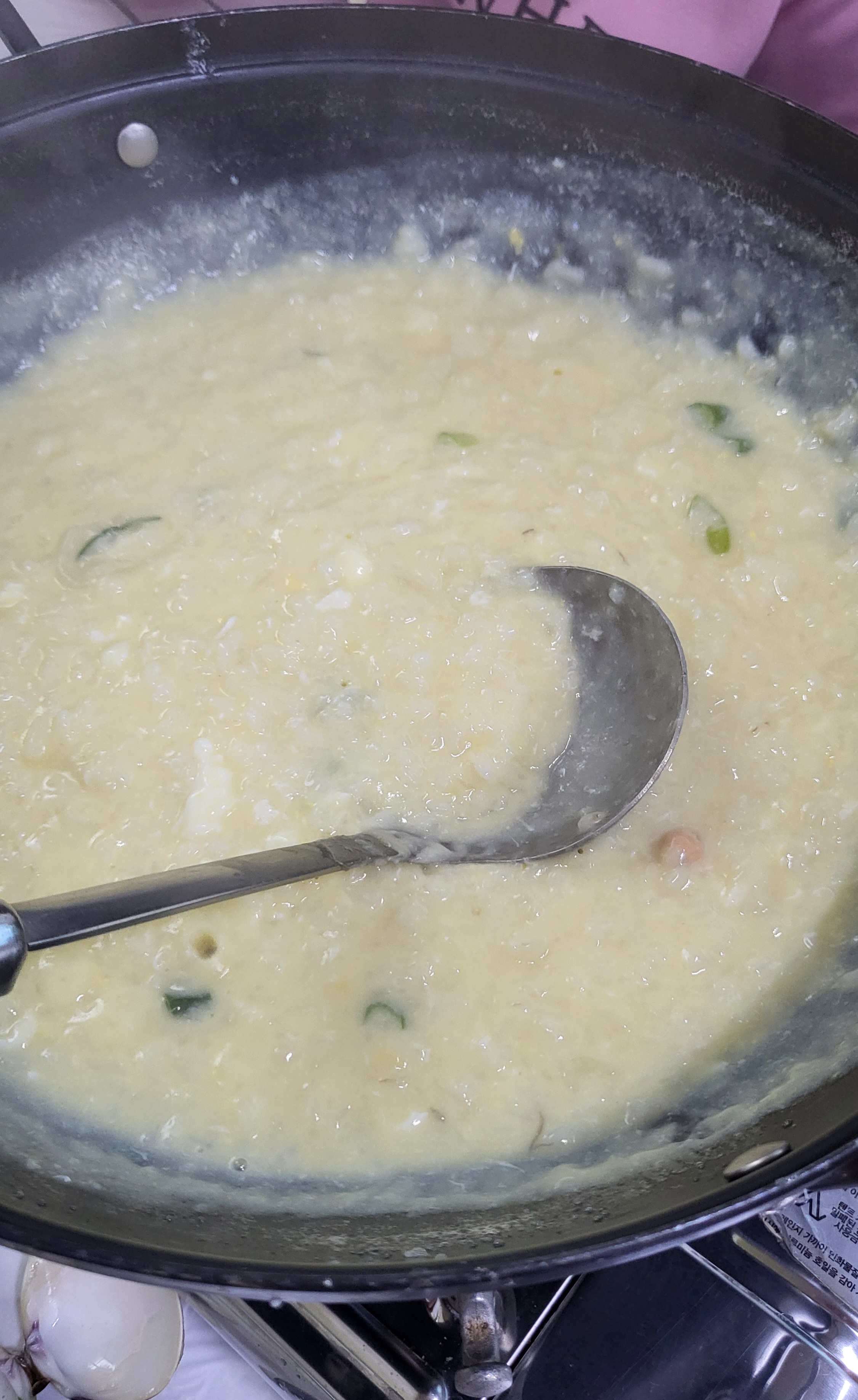 칼국수만으로 끝내면 섭섭하죠. 백합 칼국수의 국물에 죽을 끓여 먹는 것이 칼국수의 또 다른 하이라이트가 되겠죠.