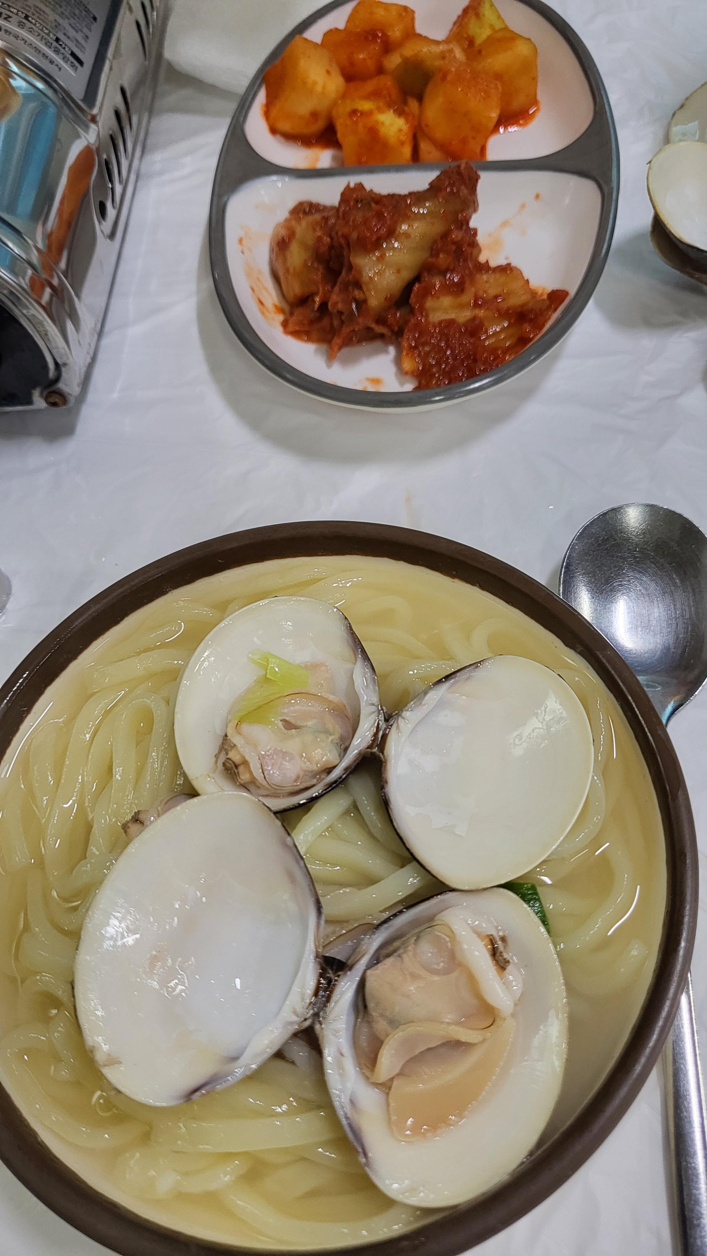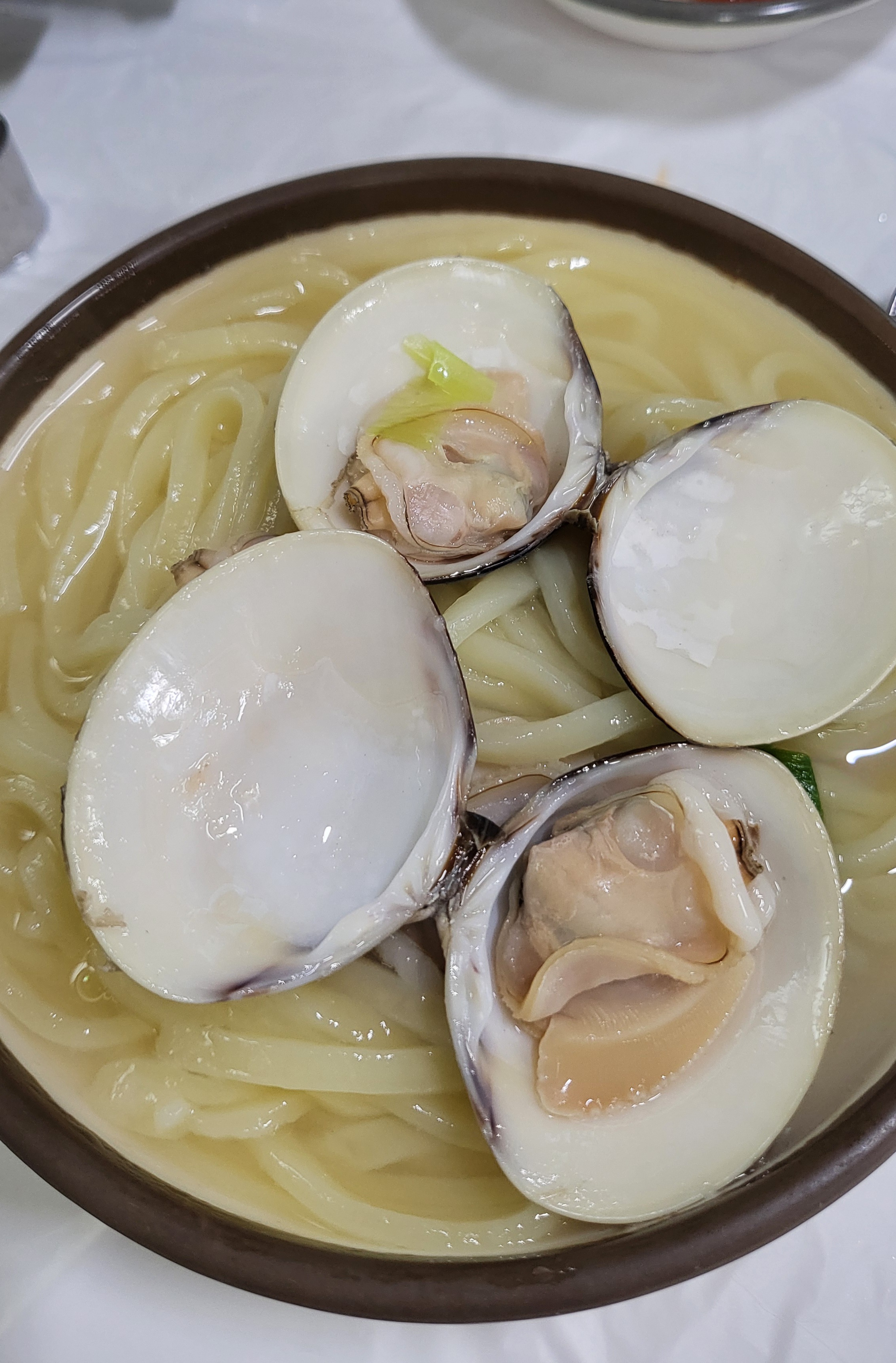특히 싱싱한 백합에서 우러나온 깊고 개운한 국물 맛이 일품입니다. 바다를 걷느라 차가워진 몸을 녹여주는 뜨끈한 온기와 해산물의 감칠맛이 입안 가득 퍼져서 정말 맛있다를 연발하면서 먹었어요.
