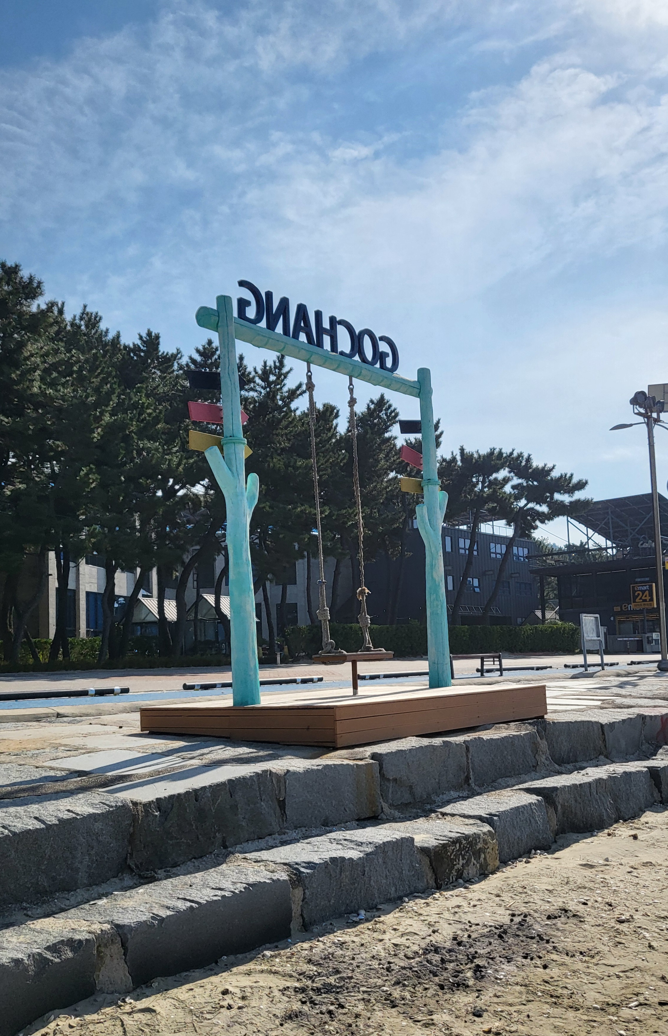 구시포 해변을 거닐다 보니 눈에 띄는 포토존이 있었는데요. 바로 바다를 향한 그네입니다. 그네에 앉아 수평선과 갯벌, 그리고 멀리 보이는 등대를 배경으로 사진을 남겨볼 수 있어요.