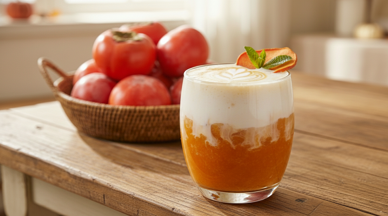 🔸홍시 라떼: 껍질과 씨를 제거한 홍시 과육을 으깨 컵에 담고, 우유를 부어주면 끝! 설탕 없이도 달콤한 리얼 라떼가 완성됩니다.