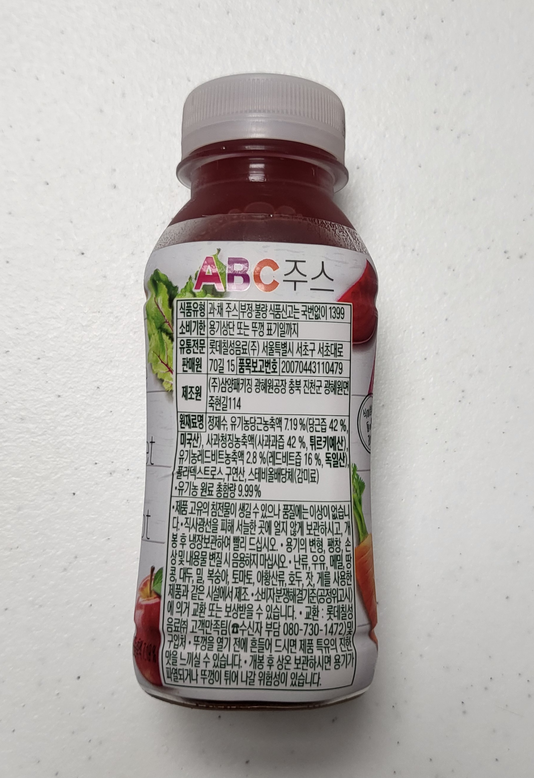 냉장고에 시원하게 보관했다가 흔들어 마시면 훨씬 맛있더라구요. 설탕 가득한 탄산음료 대신 ABC 주스를 마시면서 나름 건강을 챙기고 있답니다.