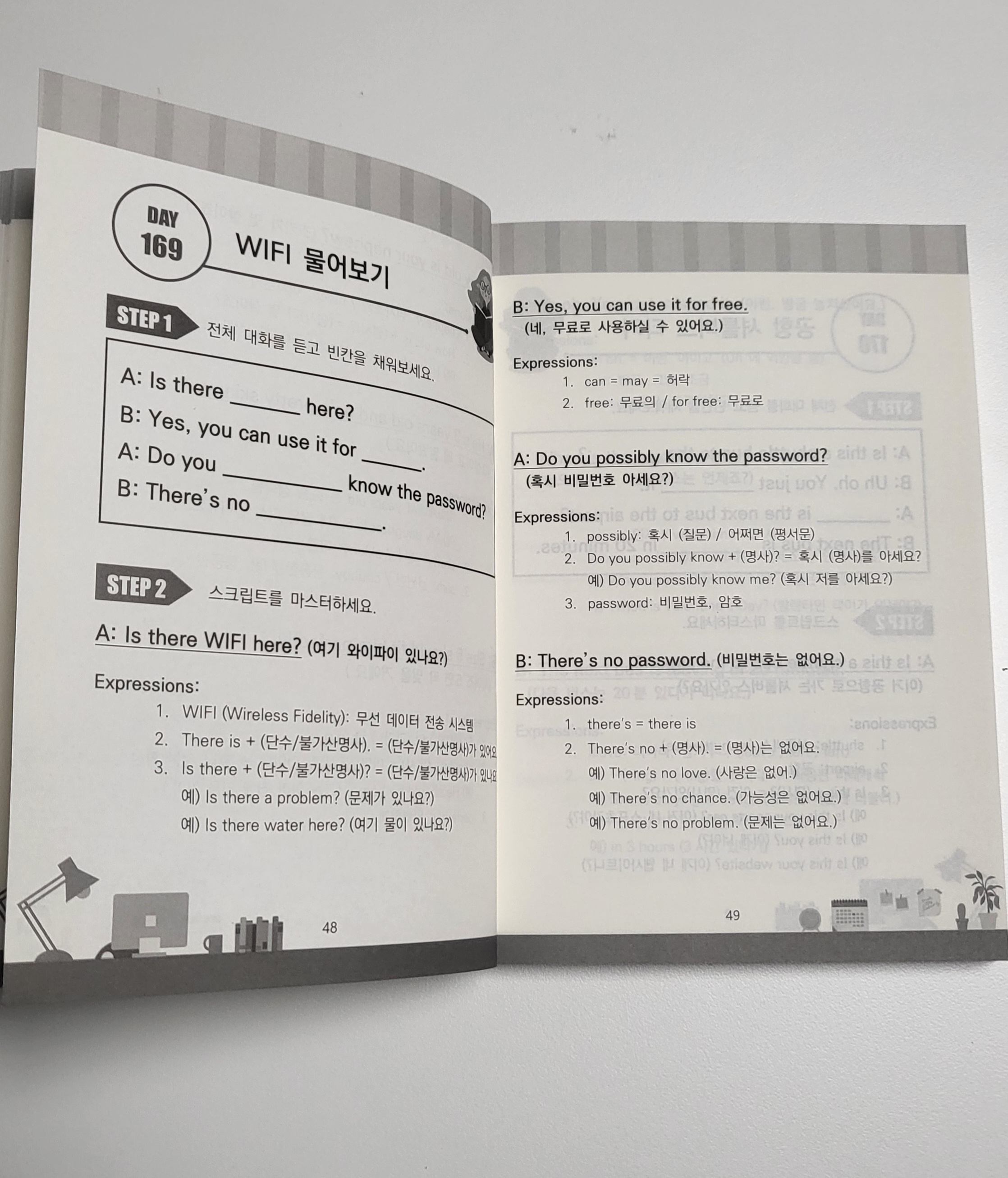 - 눈으로 읽는 것은 독해 공부입니다. 회화는 근육 기억입니다. 짧은 문장이라도 반드시 소리 내어 5번 이상 반복하세요.