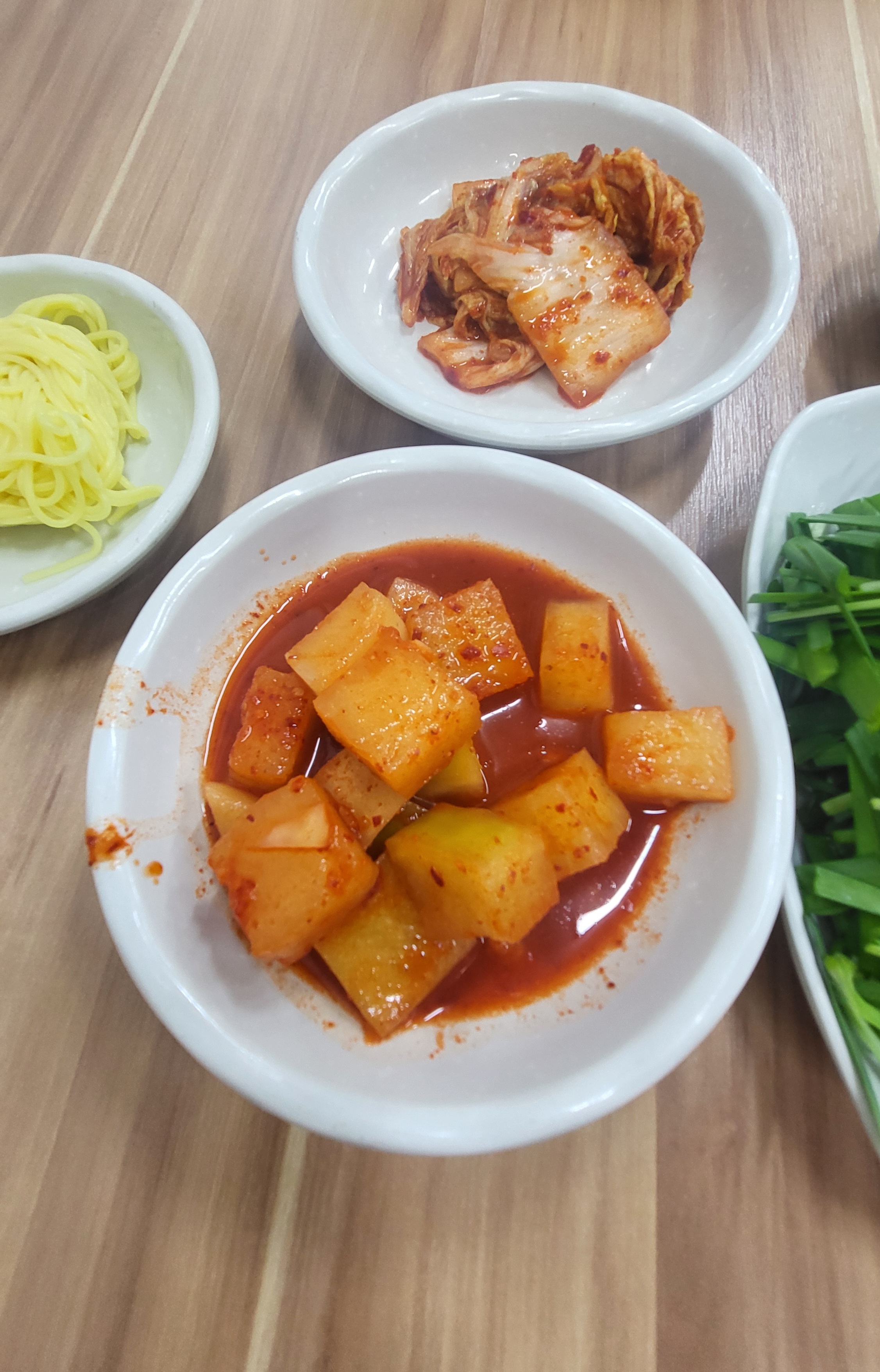 부추 좋아하는데 많이 주셔서 좋았습니다. 깍두기, 배추, 다 맛있었고 국물에 넣어 먹은 소면도 맛있었어요. 어느 것 하나 빠지는 것 없이 다 맛있어서 기분 좋게 점심을 먹었네요.