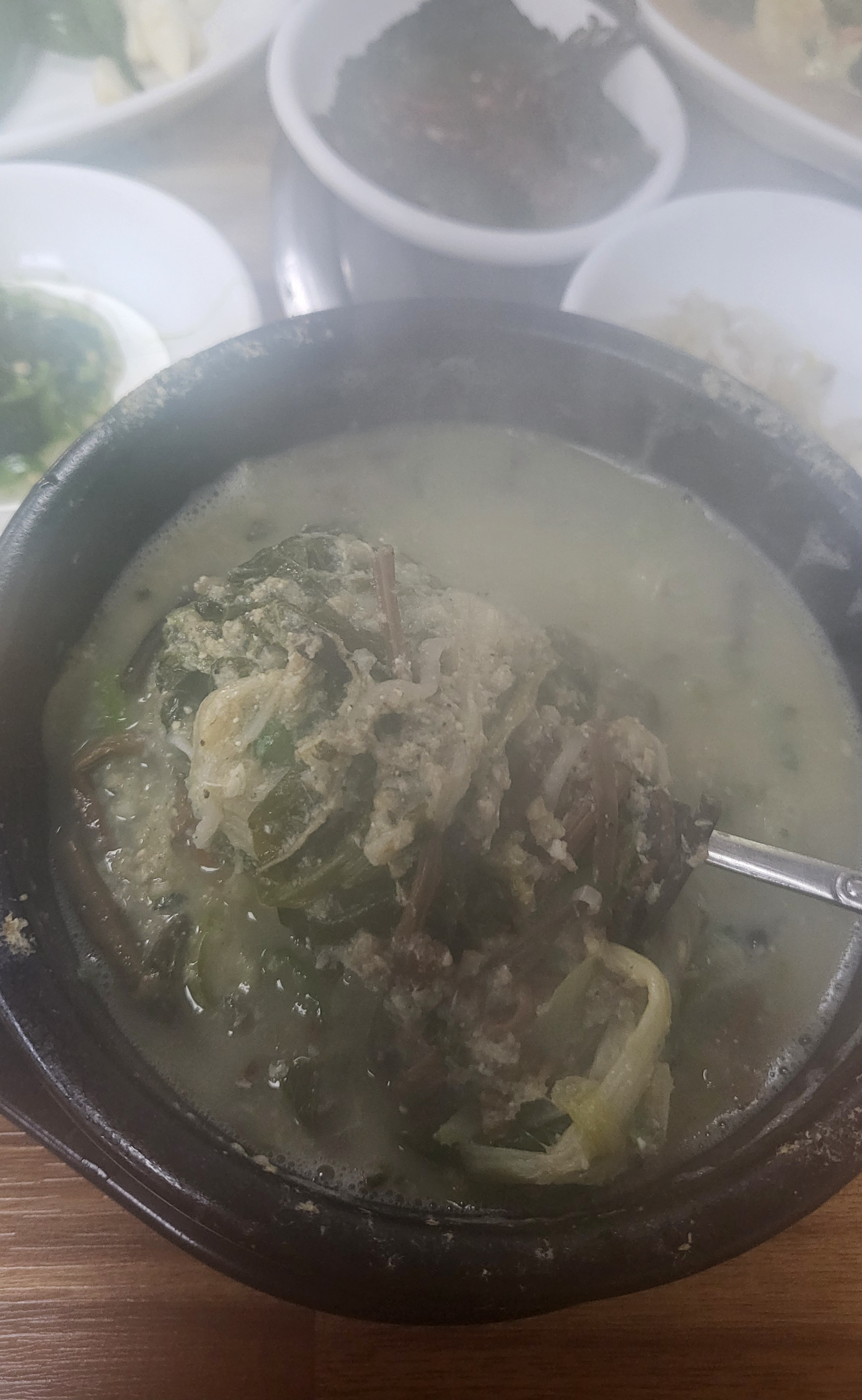 추어탕보다 진하고 탕의 건더기들이 국물과 어우러져 국물 한 입에 속이 확 풀리는 느낌이었어요. 장어 살이 잘게 녹아들어 국물이 시원했으며, 우거지와 숙주 등 채소가 듬뿍 들어있어 씹는 맛이 일품입니다.