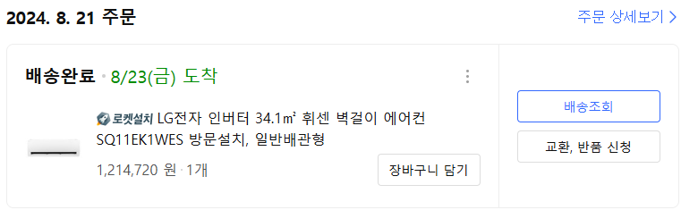 그리고 스탠드를 살려고 하니 백오십 이상은 줘야 되고, 집에 에어컨 자리 확보도 쉽지 않아서 다시 벽걸이 에어컨으로 알아보았어요.
