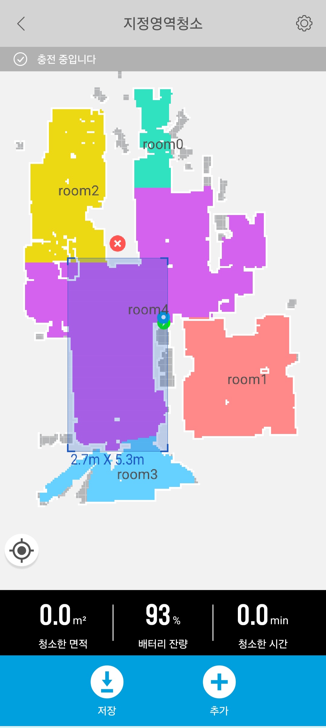 그러면 드레그 해서 거실의 청소해 줄 부분의 크기를 늘려서 지정합니다. 그런 다음 저장 버튼을 누릅니다.