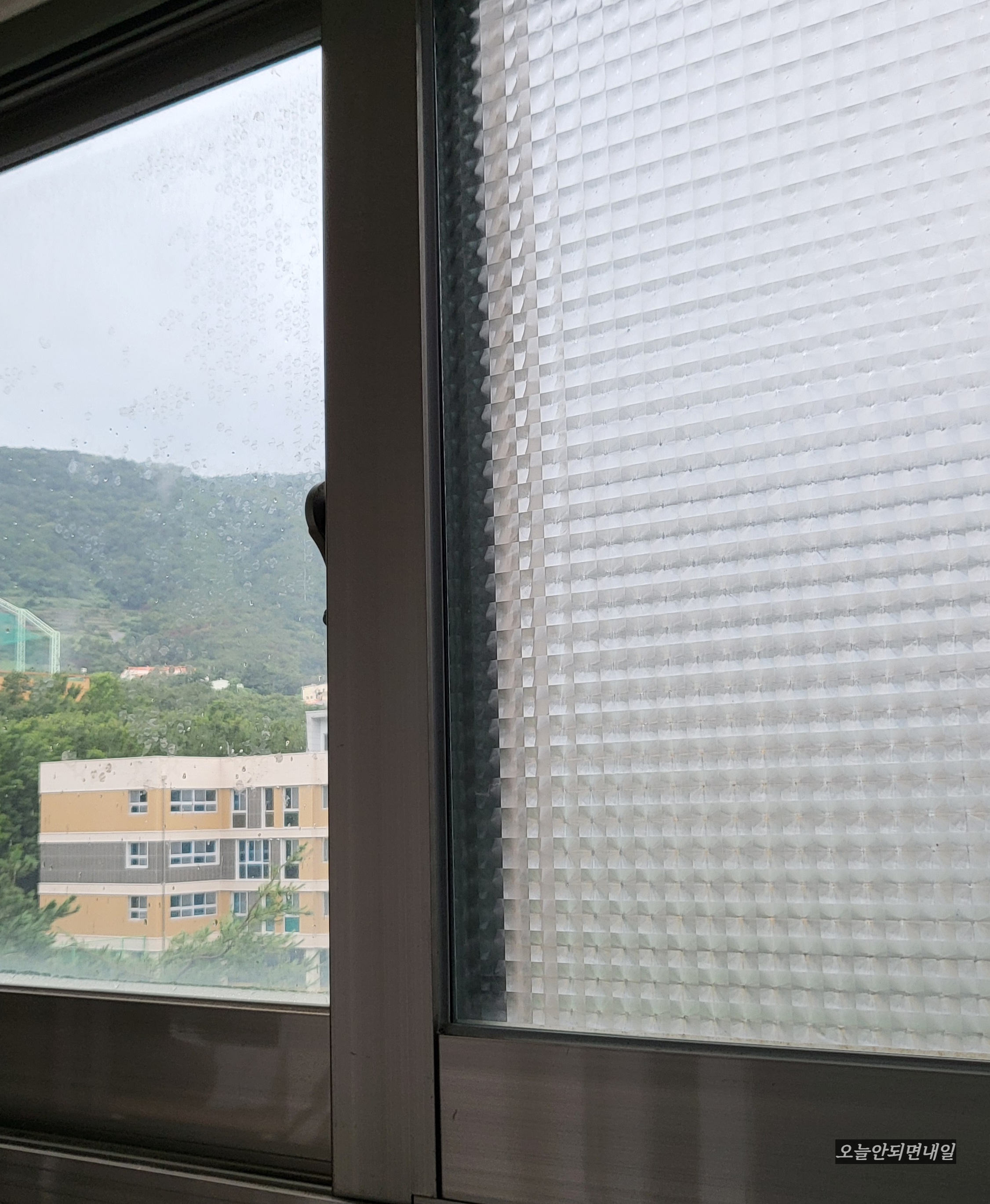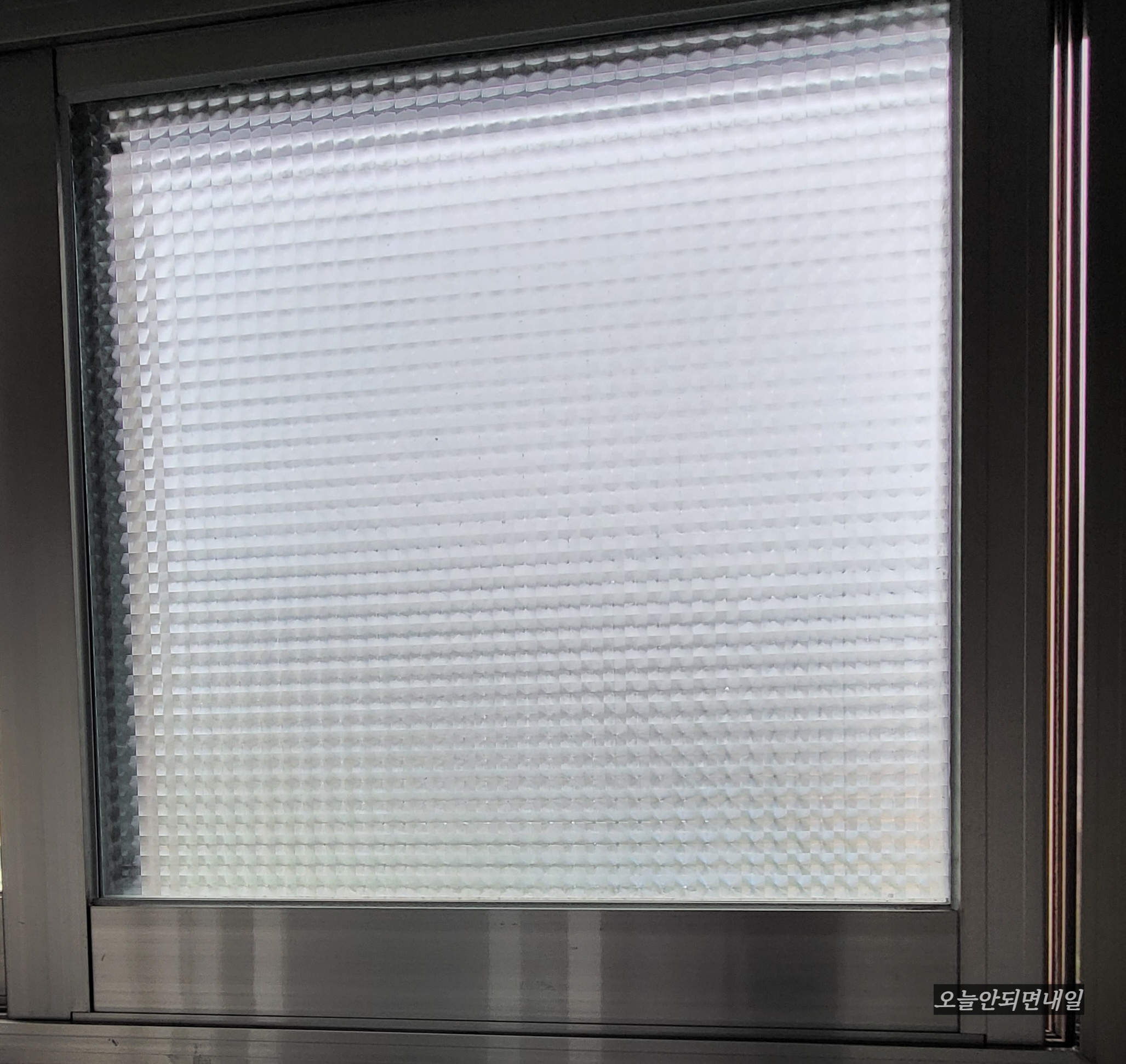 확실히 시트지를 붙인 곳은 밖이 보이지 않습니다. 밖에서도 역시 안을 볼 수가 없습니다. 열차단까지 되는지는 모르겠지만, 사생활 보호는 확실히 되네요.