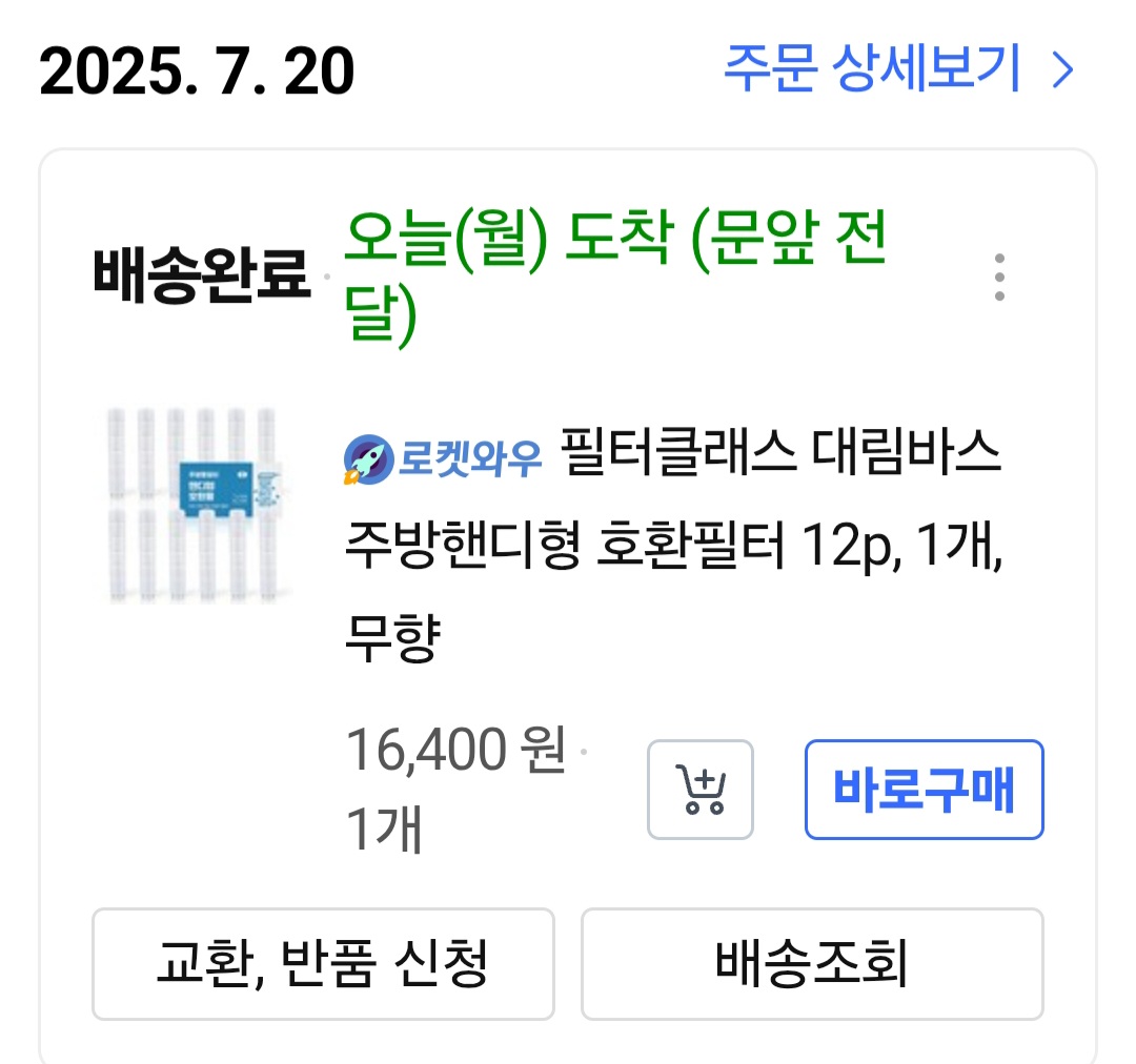 주방 필터 교체 시기가 2 ~ 3개월인데 바쁘게 지내다 보니 까맣게 잊어버리고 생활하고 있었네요. 부랴부랴 로켓와우로 주문해서 필터를 교체하였어요.