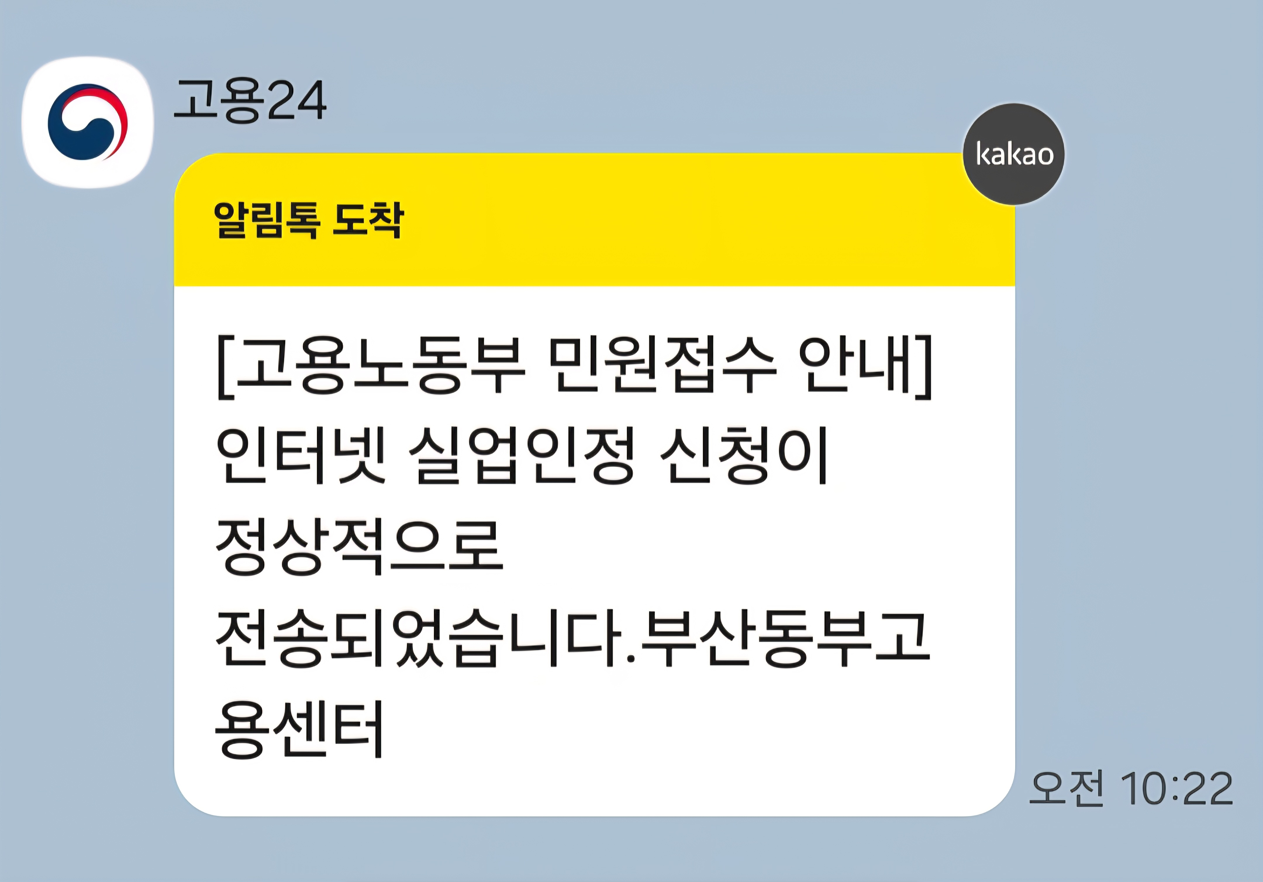 ⭐ 정상적으로 실업인정 신청 완료시 카톡으로 알림이 옵니다.