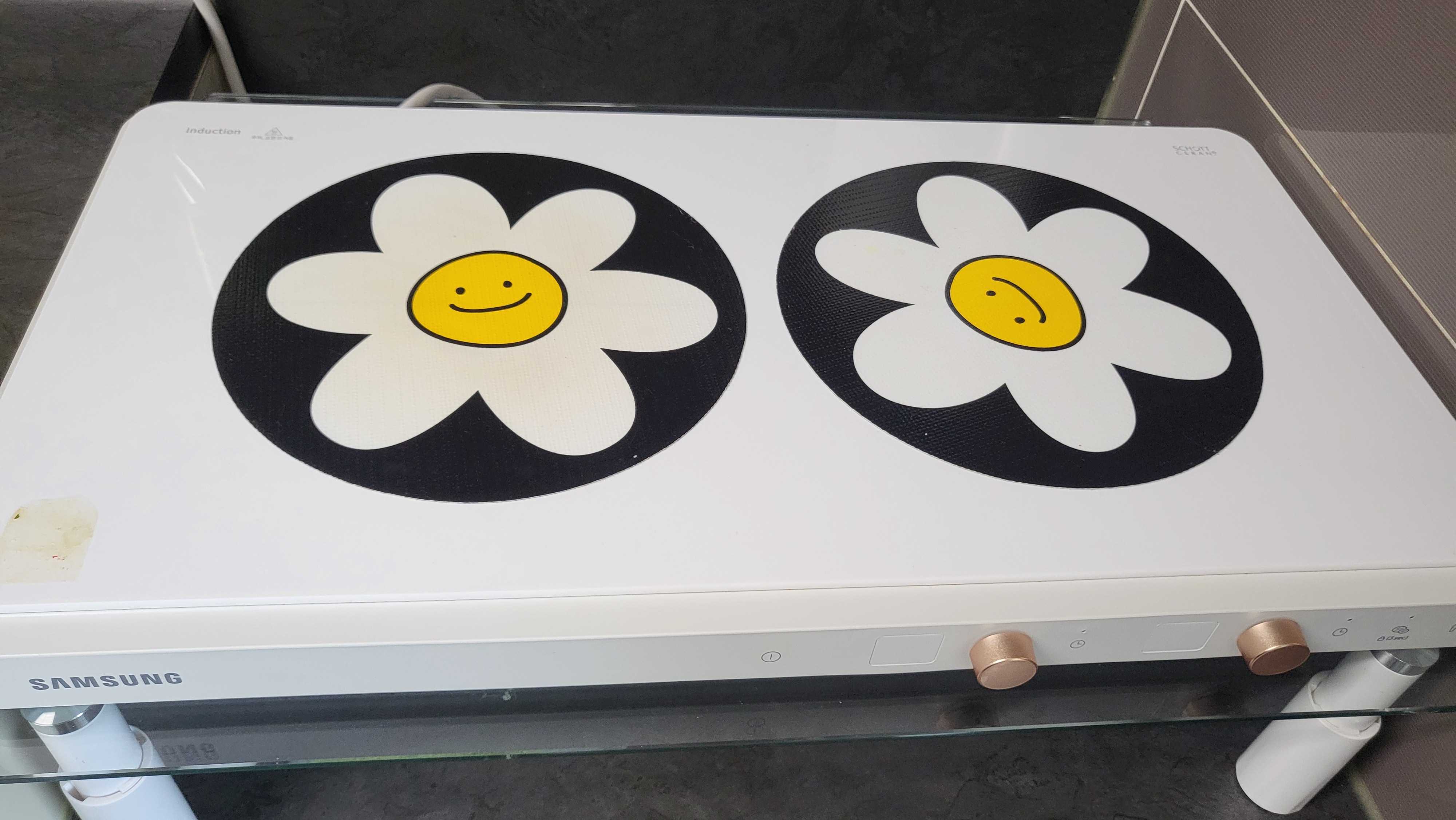 가스레인지 있던 자리에 받침대를 놓고 그 위에 인덕션을 놓은 모습이에요.