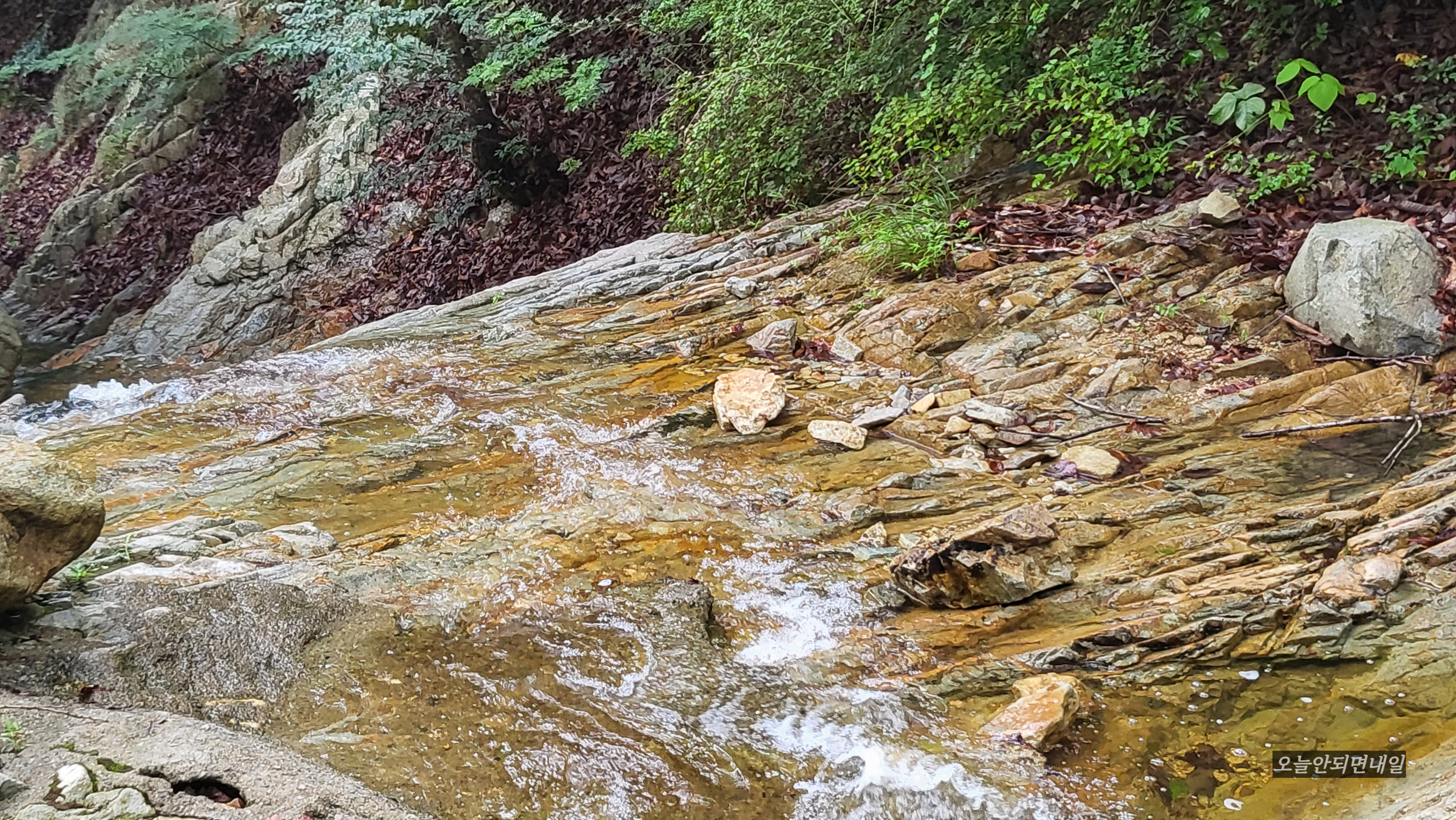 가다가 계곡이 나와서 앉아서 발을 담구며 잠시 더위를 식혔습니다. 물이 맑고 시원하여 복잡한 머리도 시원해지는 느낌이었습니다. 치유의 숲으로 오는 길도 한적하여 드라이브 하기에도 좋았습니다.
