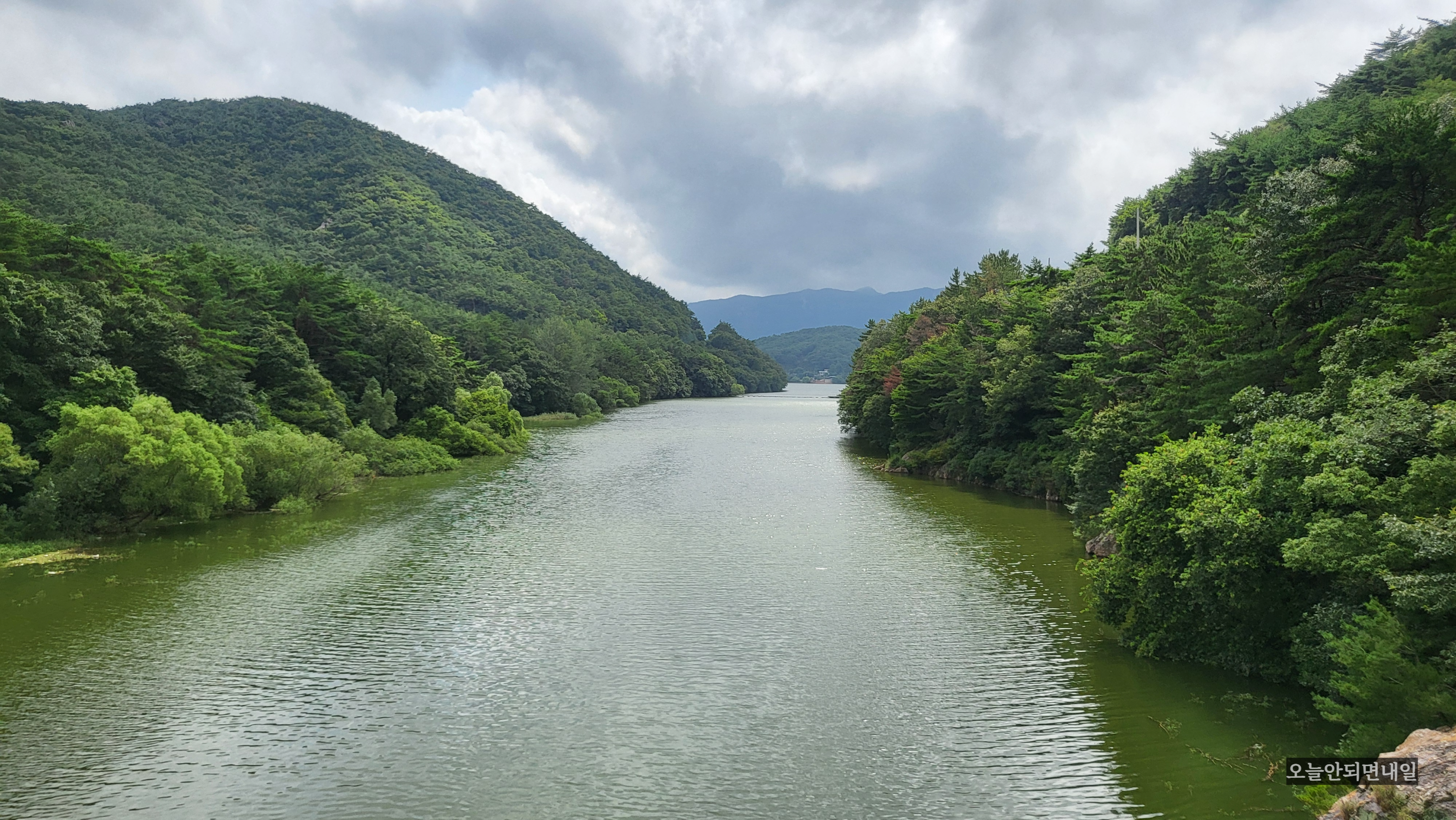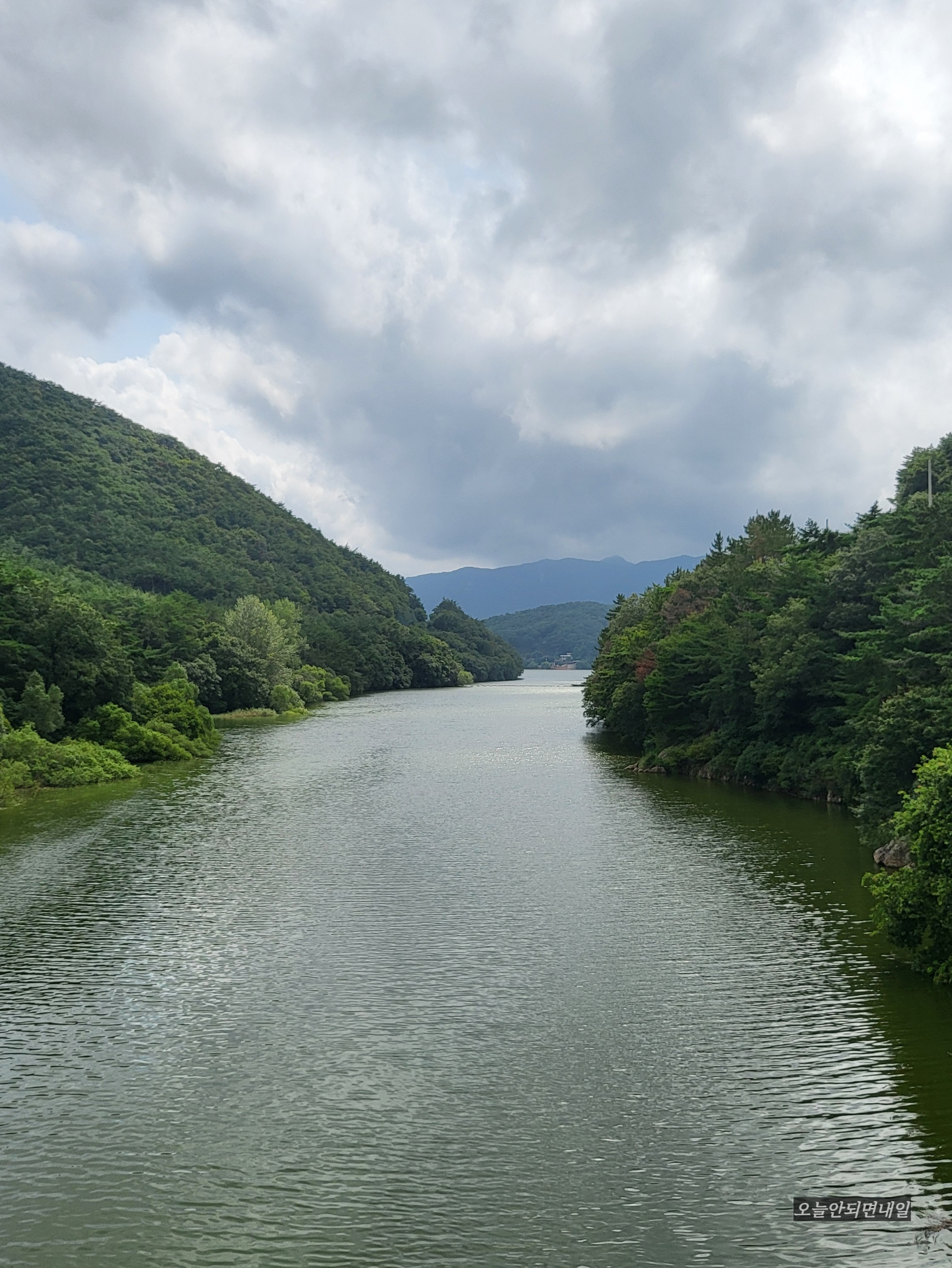 다리 중간쯤에서 수원지를 바라보면 마음이 뻥 뚫리는 시원함을 느낄 수가 있어요. 게다가 시원한 바람까지 불어와서 다리 위에서 한 참 동안 풍경을 감상하였습니다.
