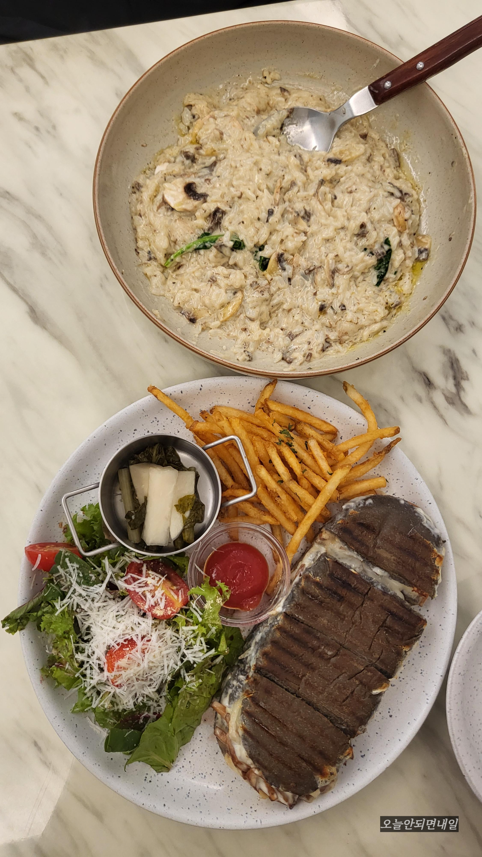 버섯 크림 리조또와 칠리 비프 파니니를 주문했어요. 요즘 소비쿠폰 덕분에 외식을 자주 하게 되네요. 파니니도 맛있는데 제 입에는 리조또가 엄청 맛있었습니다.