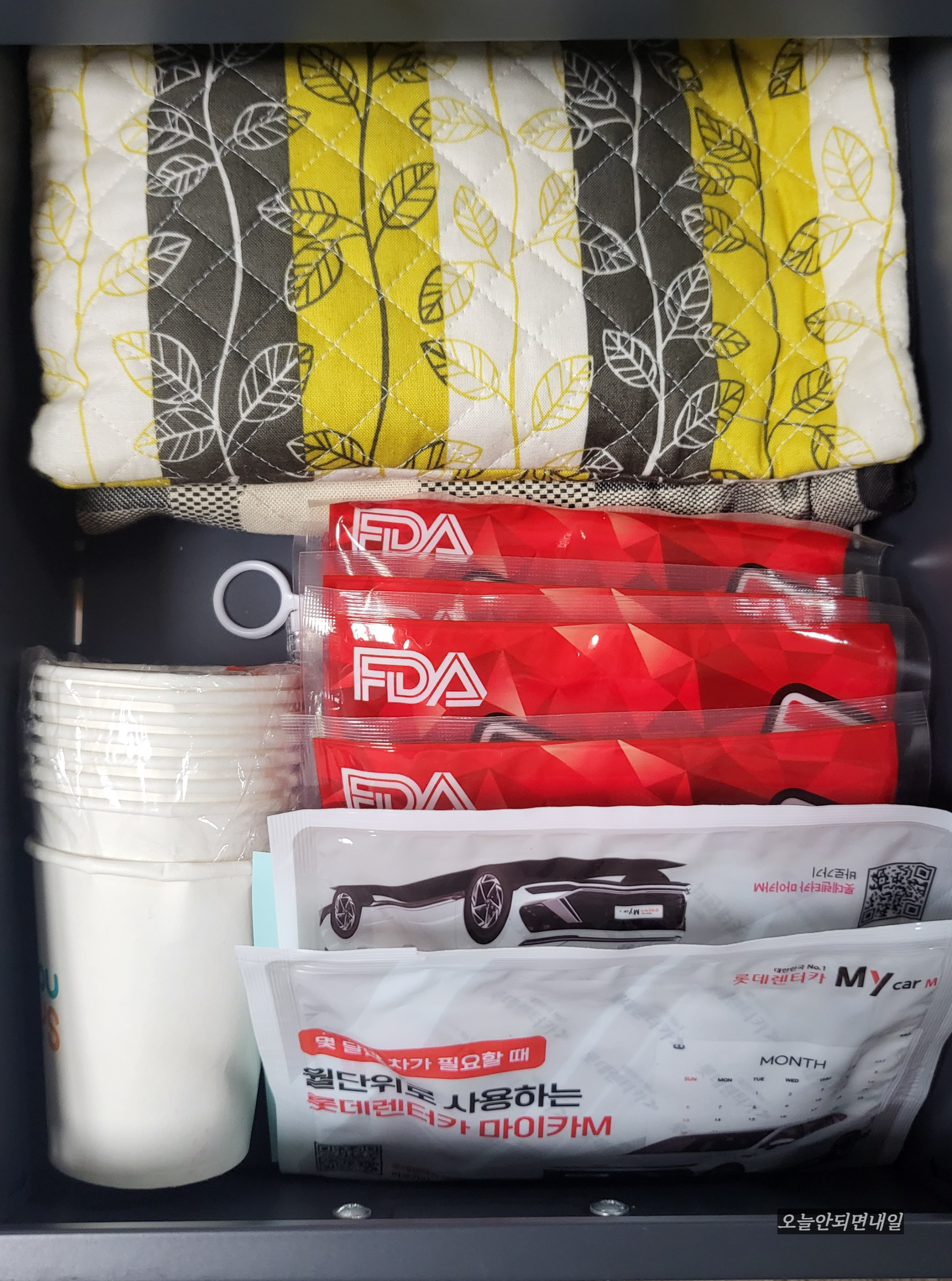 아쉬운 점은 서랍 열고 닫을 때 레일이 없다보니 약간 뻑뻑한 느낌이 듭니다. 그럼에도 크게 신경 쓰이는 부분은 아니라서 8년 동안 잘 사용 하고 있는 제품입니다. 크게 자리 차지 하지 않으면서 눈에 거슬리는 물건들 수납하기 좋은 서랍장입니다.