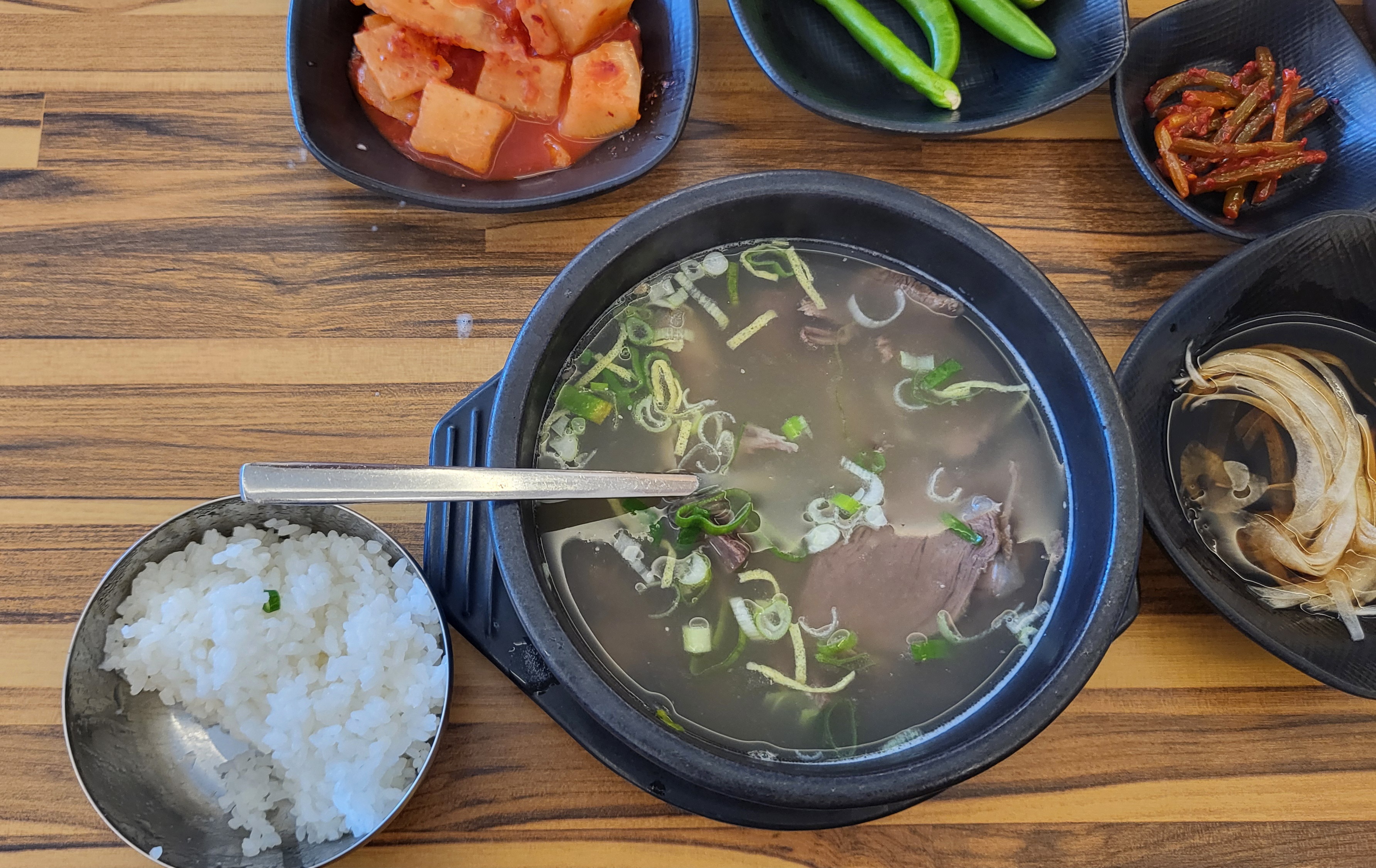 점심때가 되어서 해수욕장 근처 일광신도시에 있는 갈비탕집에 들러서 밥을 먹었어요.
