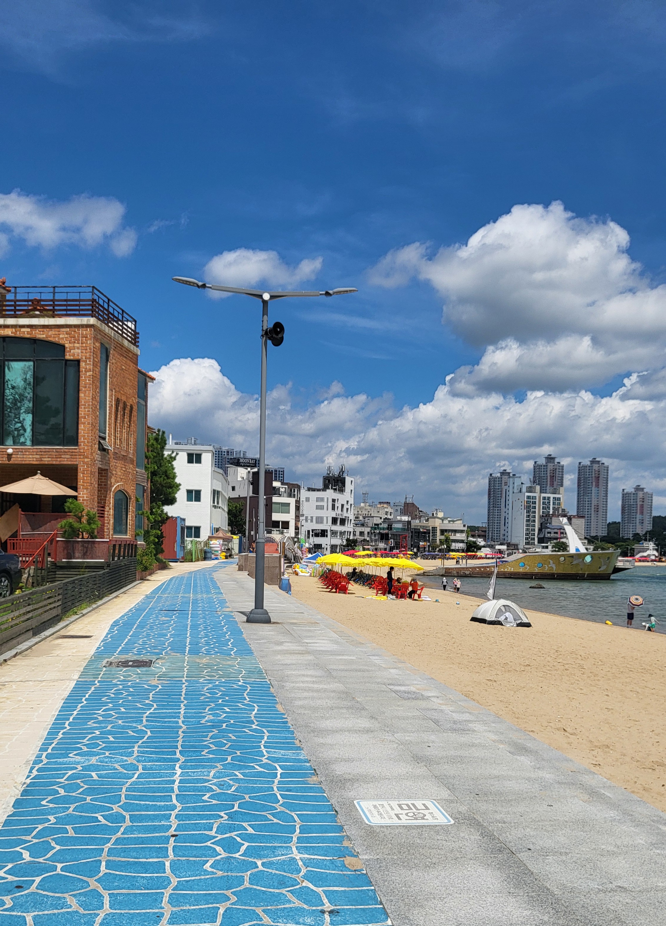 해안을 따라 예쁜 오션뷰 카페와 식당들이 줄지어 있어 젊은 층과 가족 단위 방문객에게 인기가 많습니다.