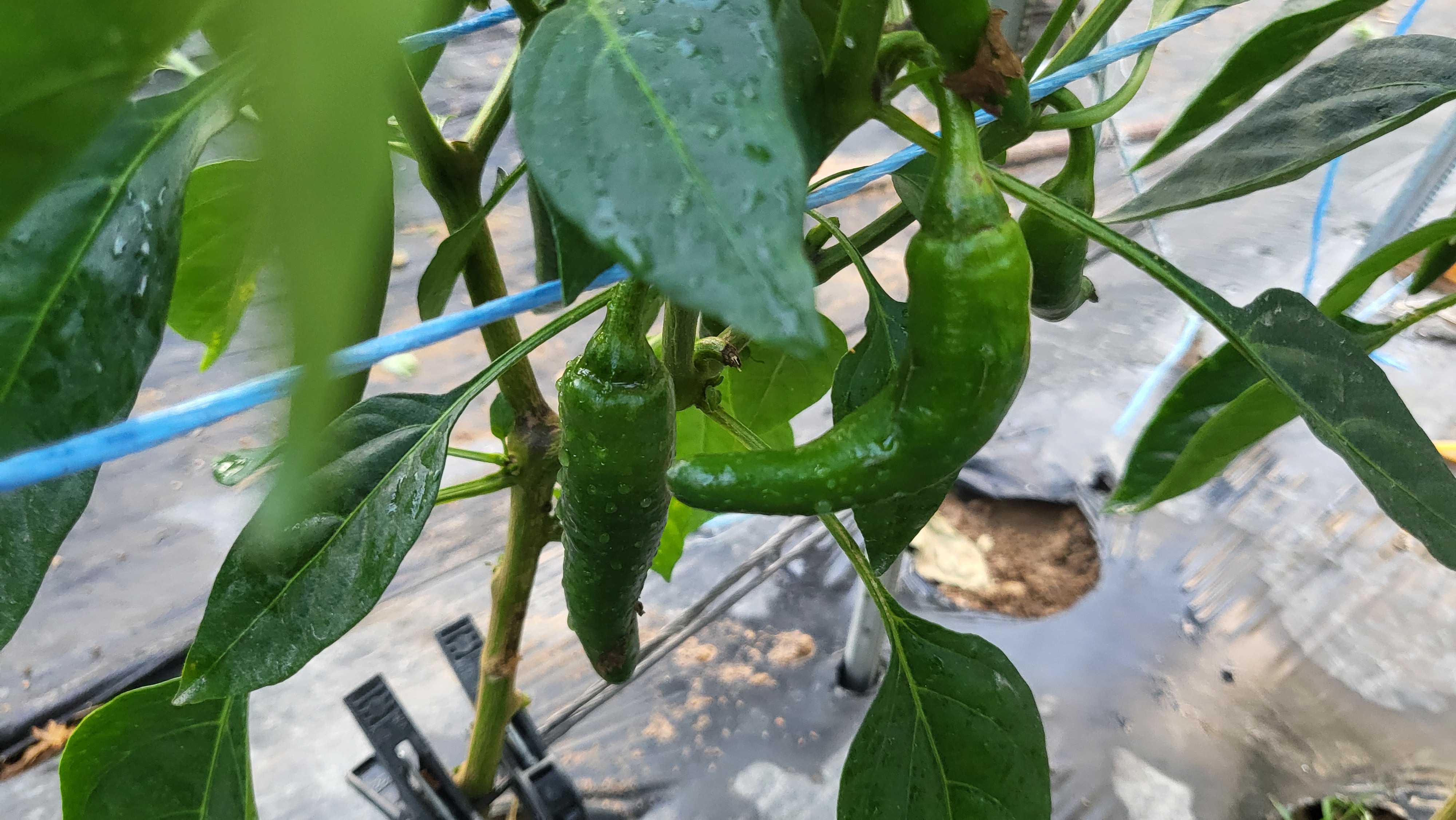 파프리카인데 처음에는 잘 되는가 싶었는데 약을 치지 않고 하니까 나중에는 죽어버렸어요.ㅠㅠ 노지 텃밭에는 환경이 안 맞는 것 같아요.