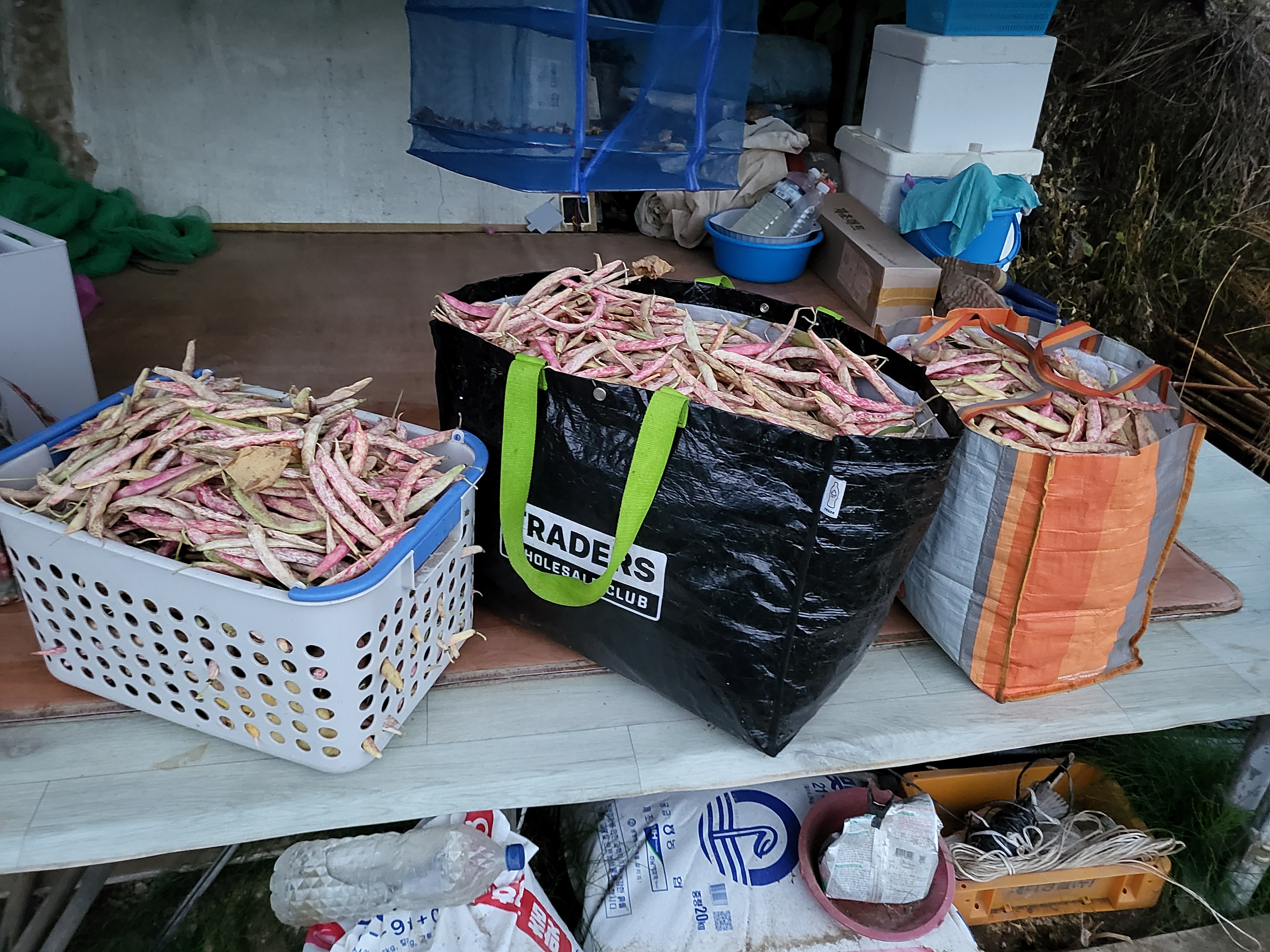 강낭콩은 2월 중순에 심어서 6월 중순에 수확합니다. 수확한 모습이에요. 밥에 콩을 넣어 먹기 때문에 필히 완두콩과 강낭콩을 심었는데 확실히 식비 절약됩니다. 콩은 냉동실에 저장해 놓고 먹으면 오래 먹을 수 있습니다.