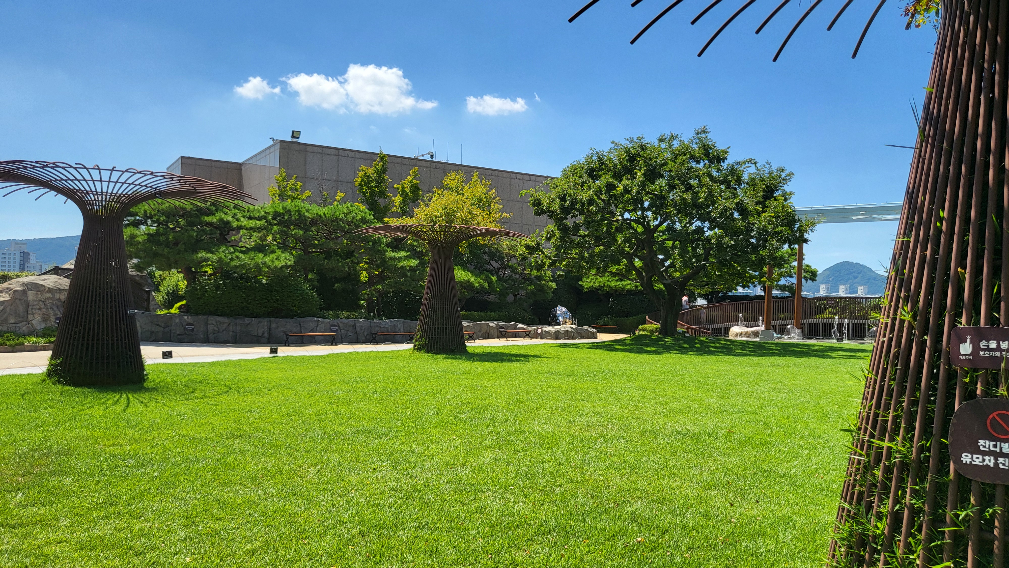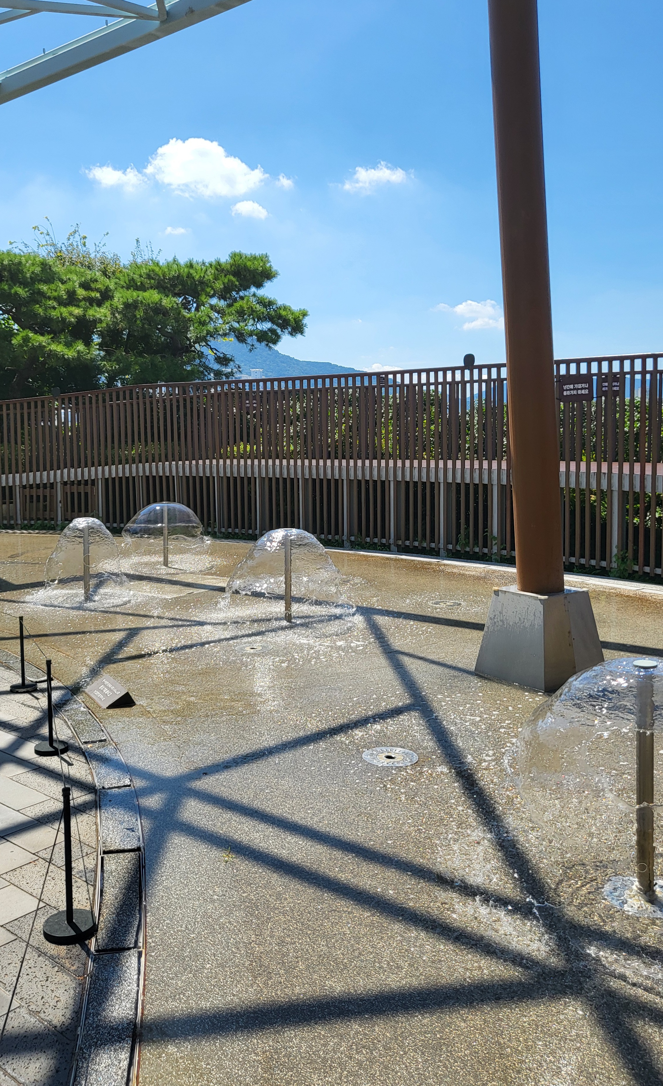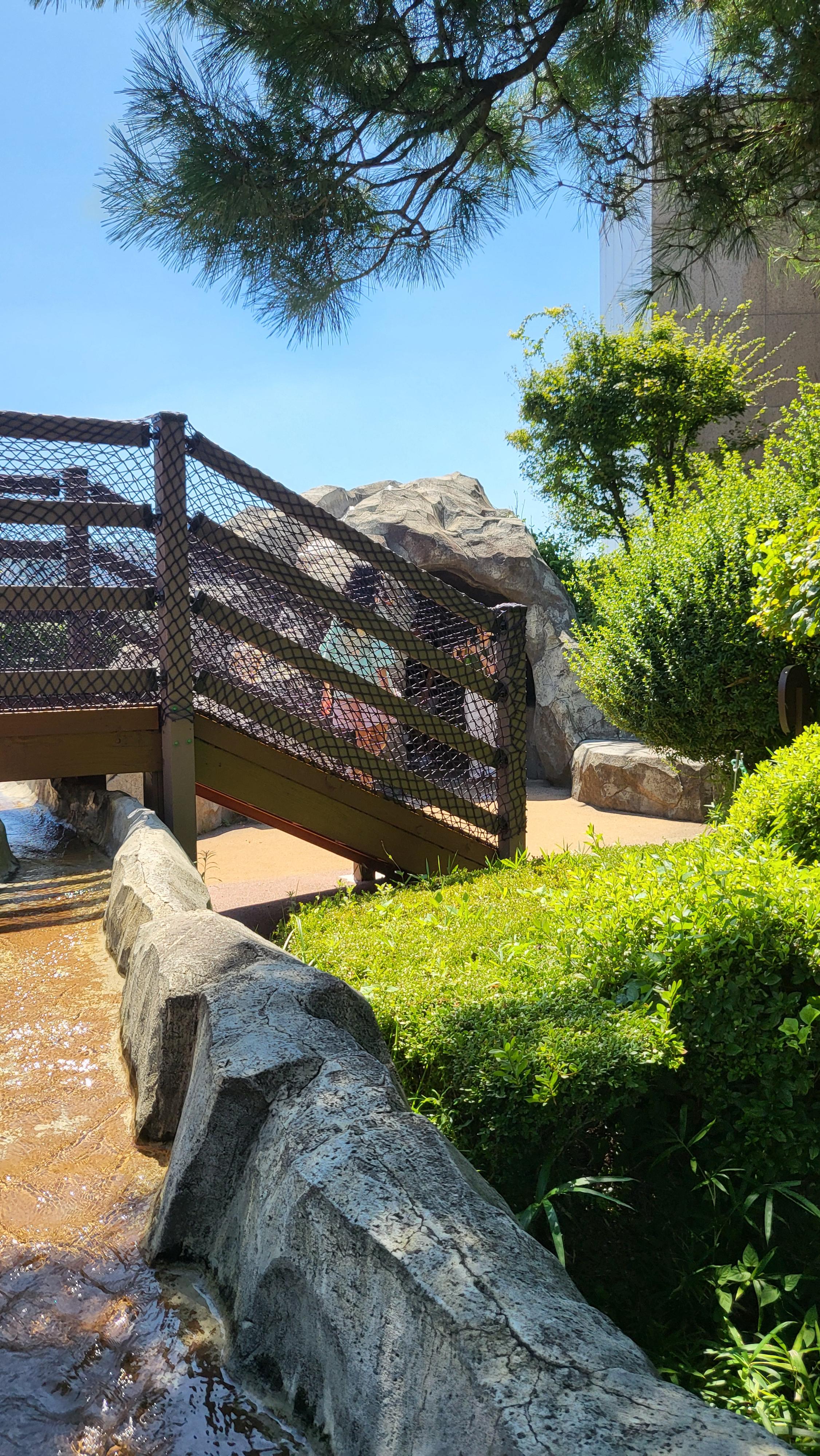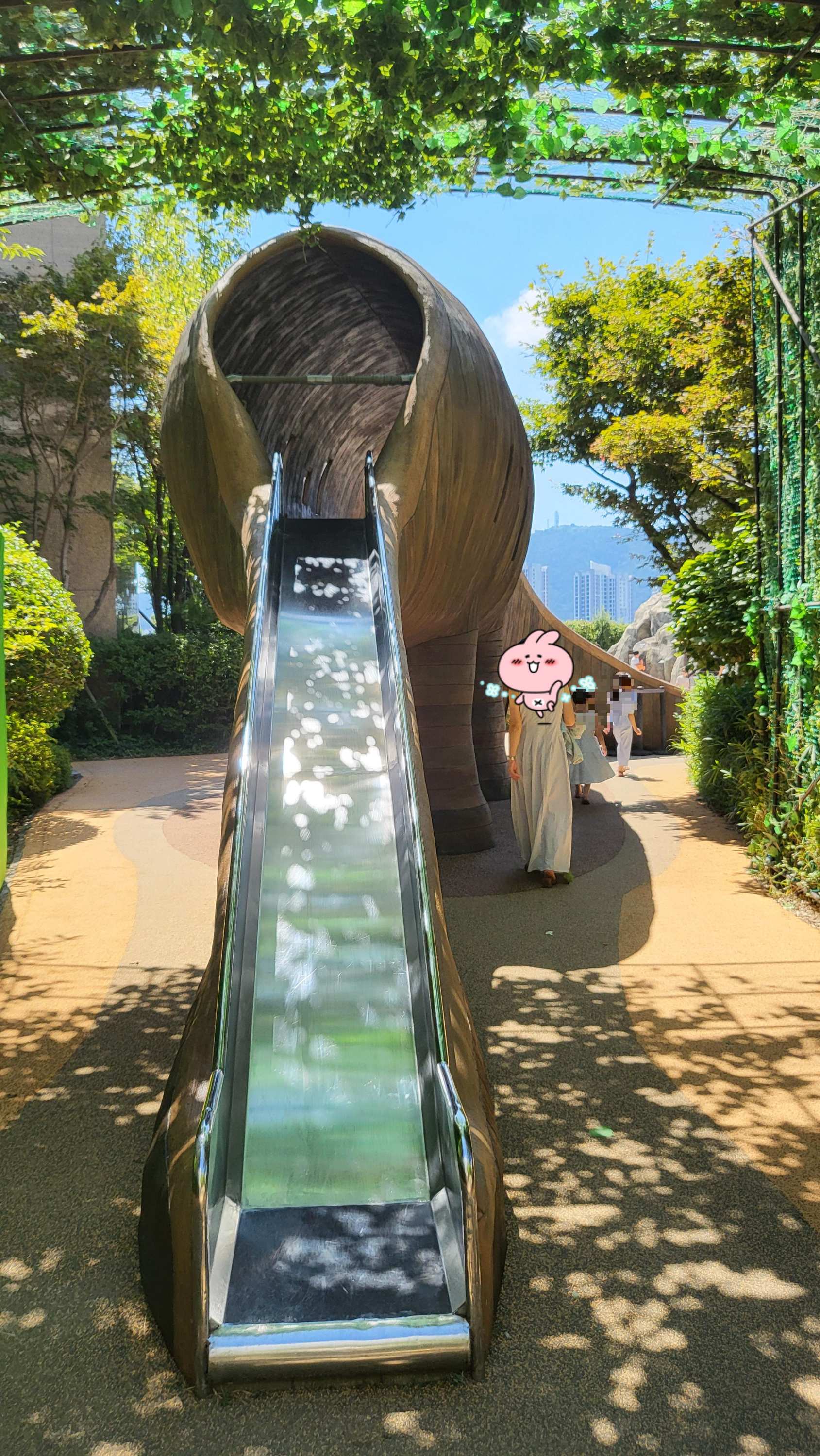 해운대에 볼일이 있어서 갔다가 점심 먹으려고 백화점 9층 식당가에 갔는데 식당 들어가는 입구 야외에 공원이 조성되어 있더라구요. 잉.. 이게 뭐지? 생각보다 넓고 아이들이 구경할 게 많이 있었어요. 저도 재미있어서 구경을 하였어요.
